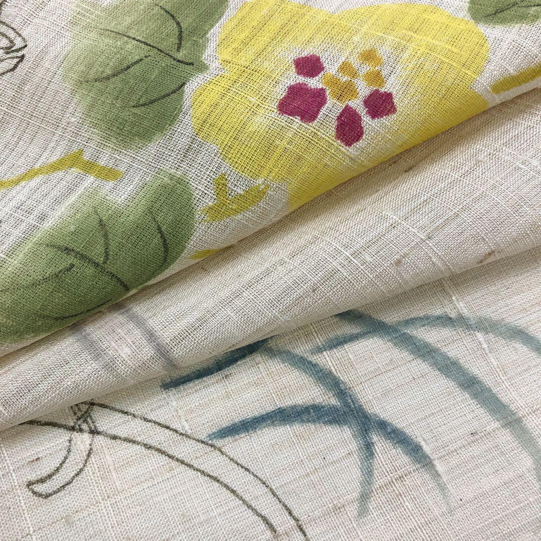 乳白色の自然な風合いの薄手の紬地に手描きの花草模様の柄裄がデザインされた素敵なお品でございます。