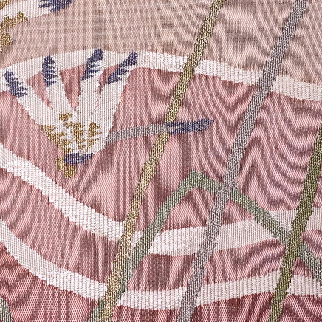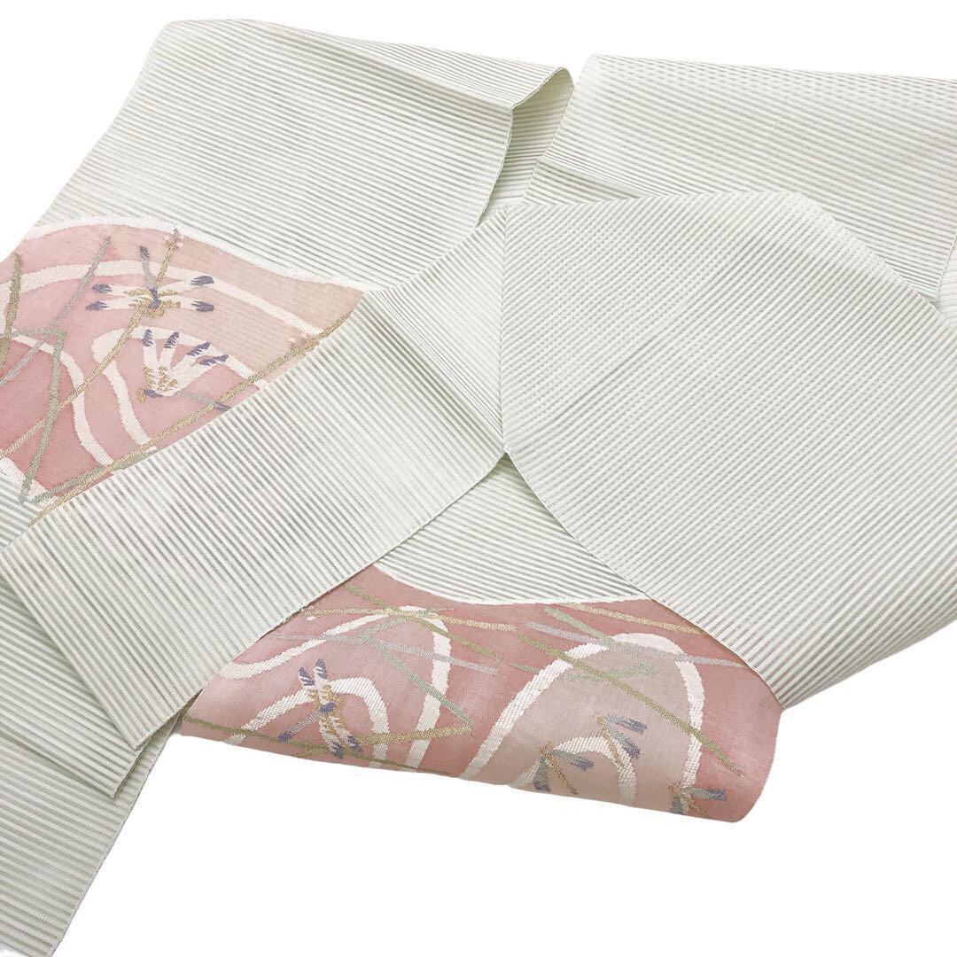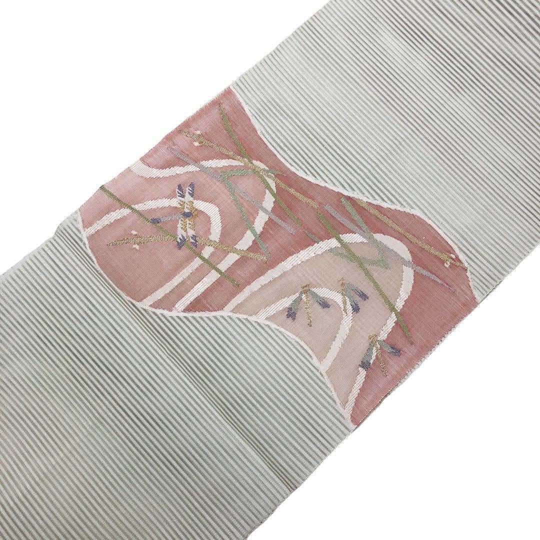 卯の花色のお色味に湖畔風景、蜻蛉の柄行がデザインされた素敵なお品でございます。