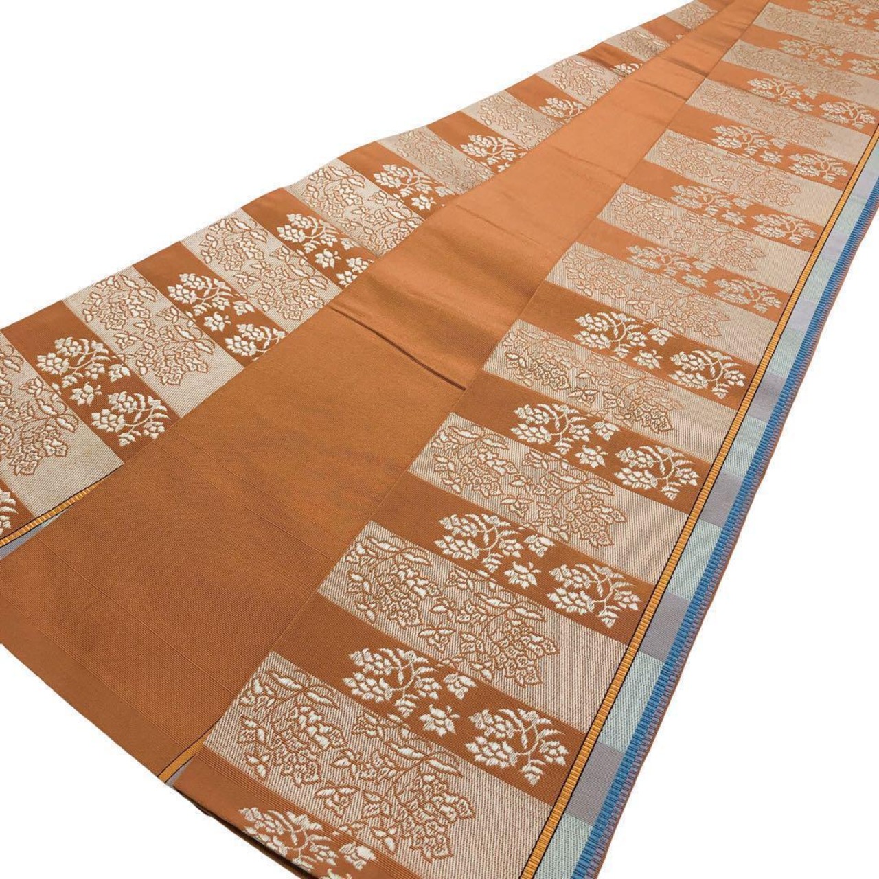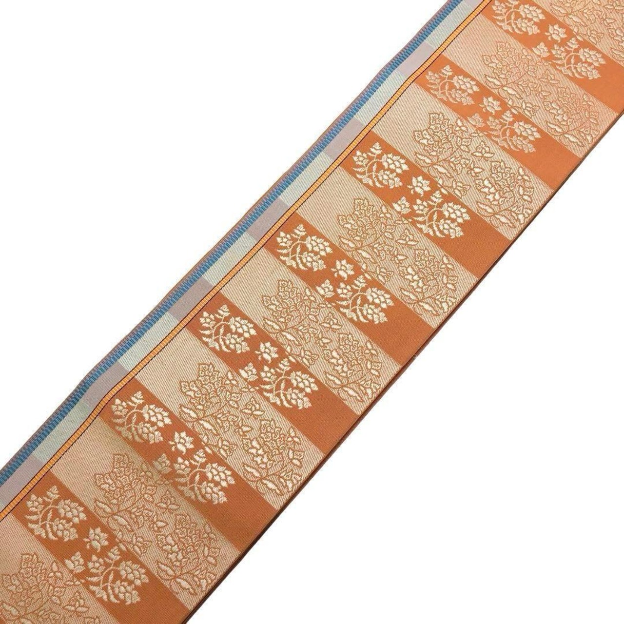 半幅帯 本場筑前博多織 証紙付 横段花模様 埴色 D-2044 着物 きもの kimono 和服 和装 中古 リサイクル着物 【送料無料】