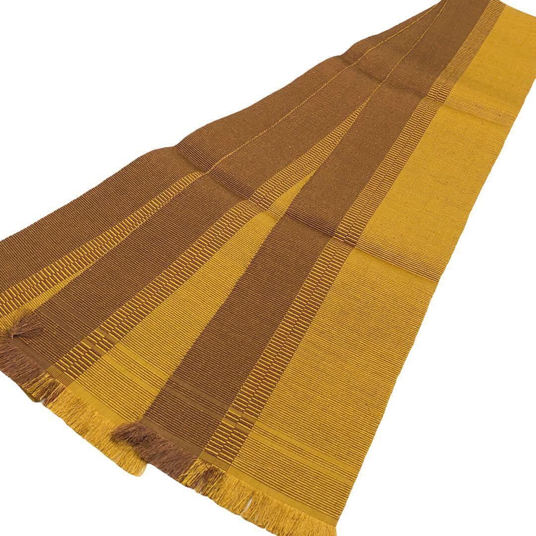 半幅帯 黄八丈 縦柄織模様 八丈色 D-2043 着物 きもの kimono 和服 和装 中古 リサイクル着物 【送料無料】