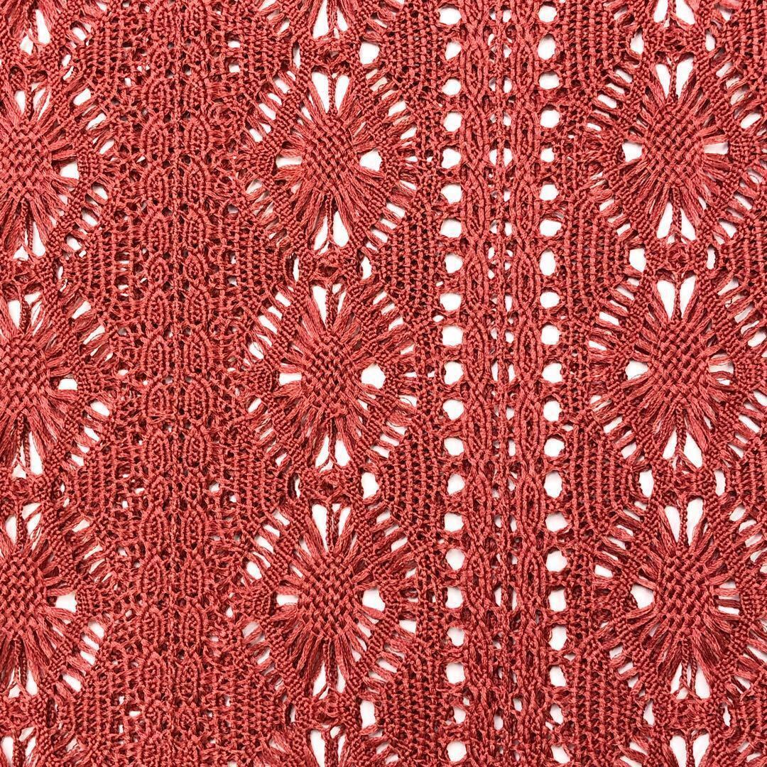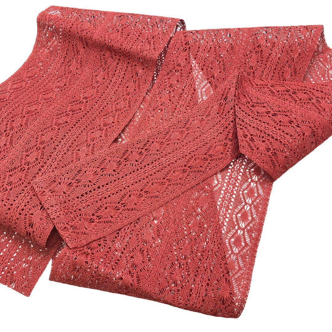 祭紅色のお色味に美しい縦柄織模様がデザインされた透け感のある涼しげなお品でございます。