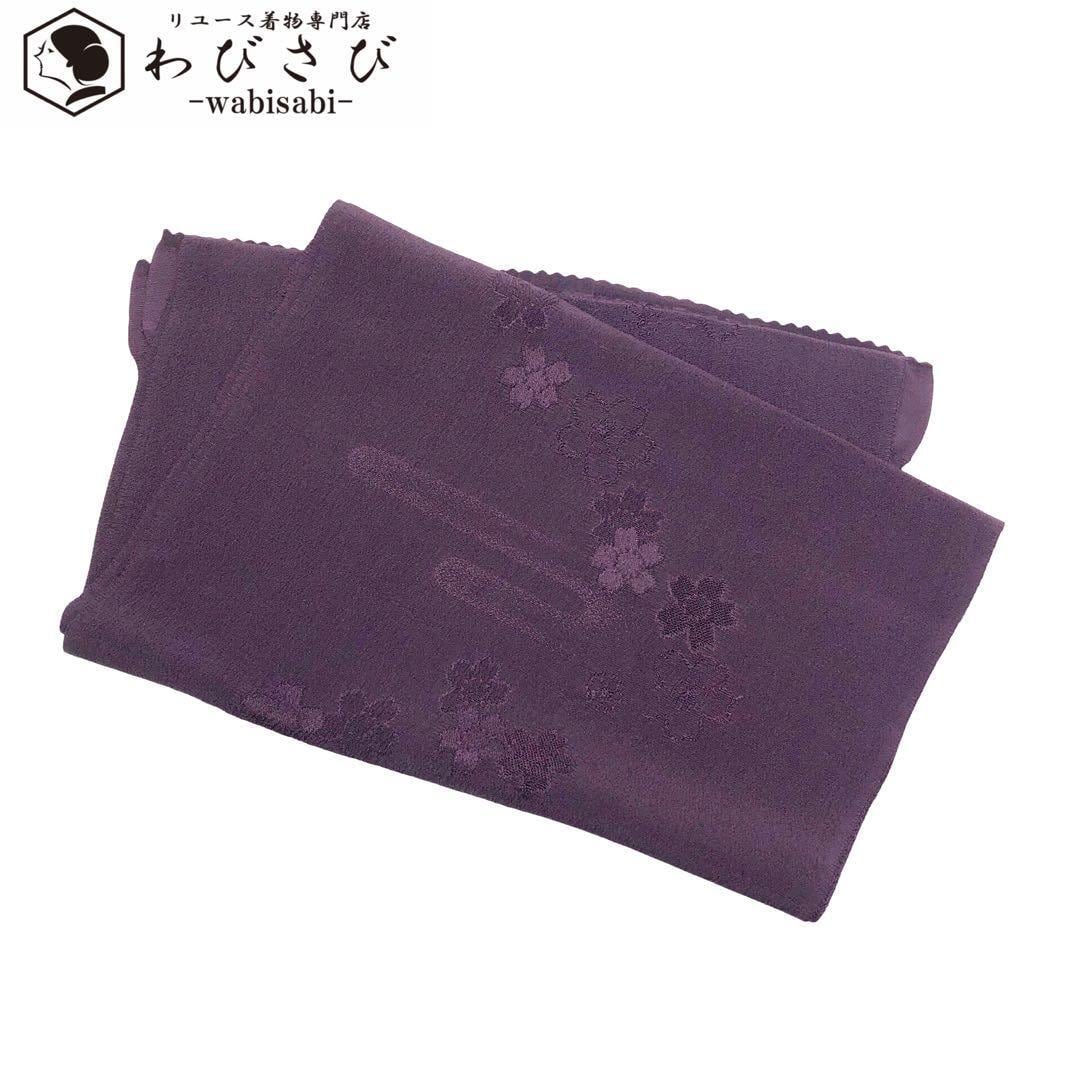 和装小物 帯揚げ 正絹 縮緬 桜の花模様 紫烏色 C-5678 着物 きもの kimono 和服 和装 中古 リサイクル着物 【送料無料】