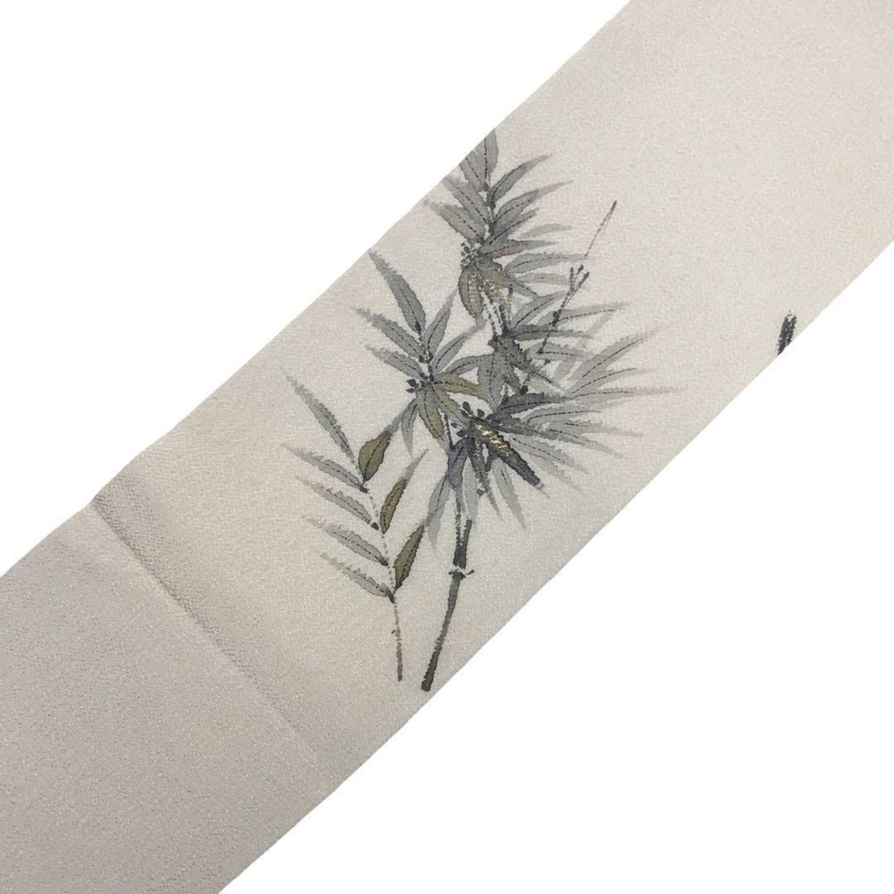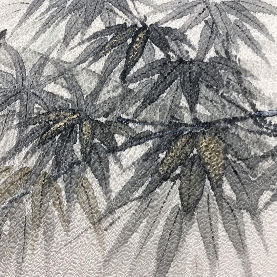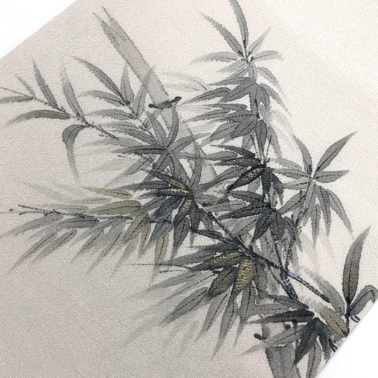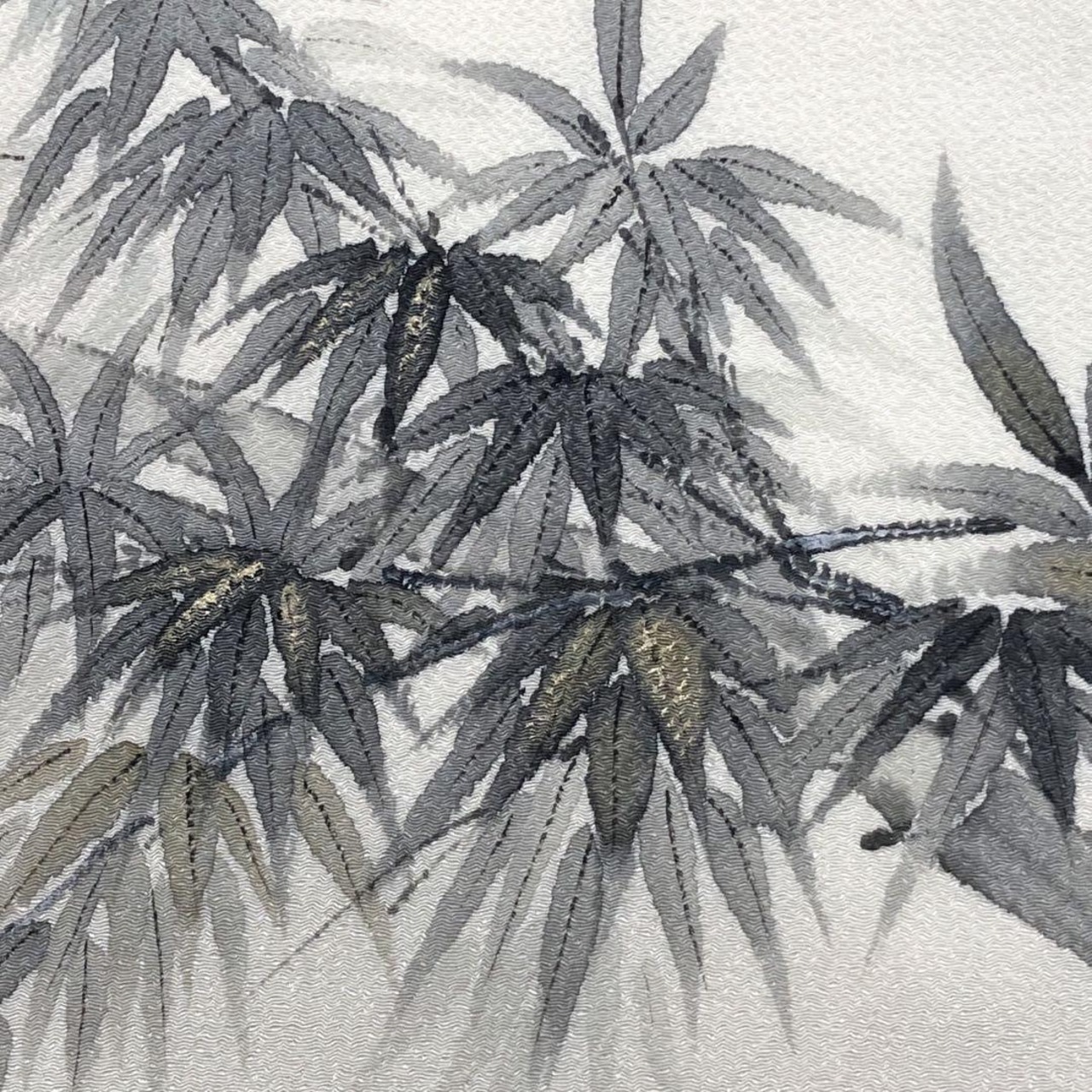 白練色の上品なお色味に墨描きの笹竹模様に僅かな金彩が散りばめられた品のある素敵なお品でございます。