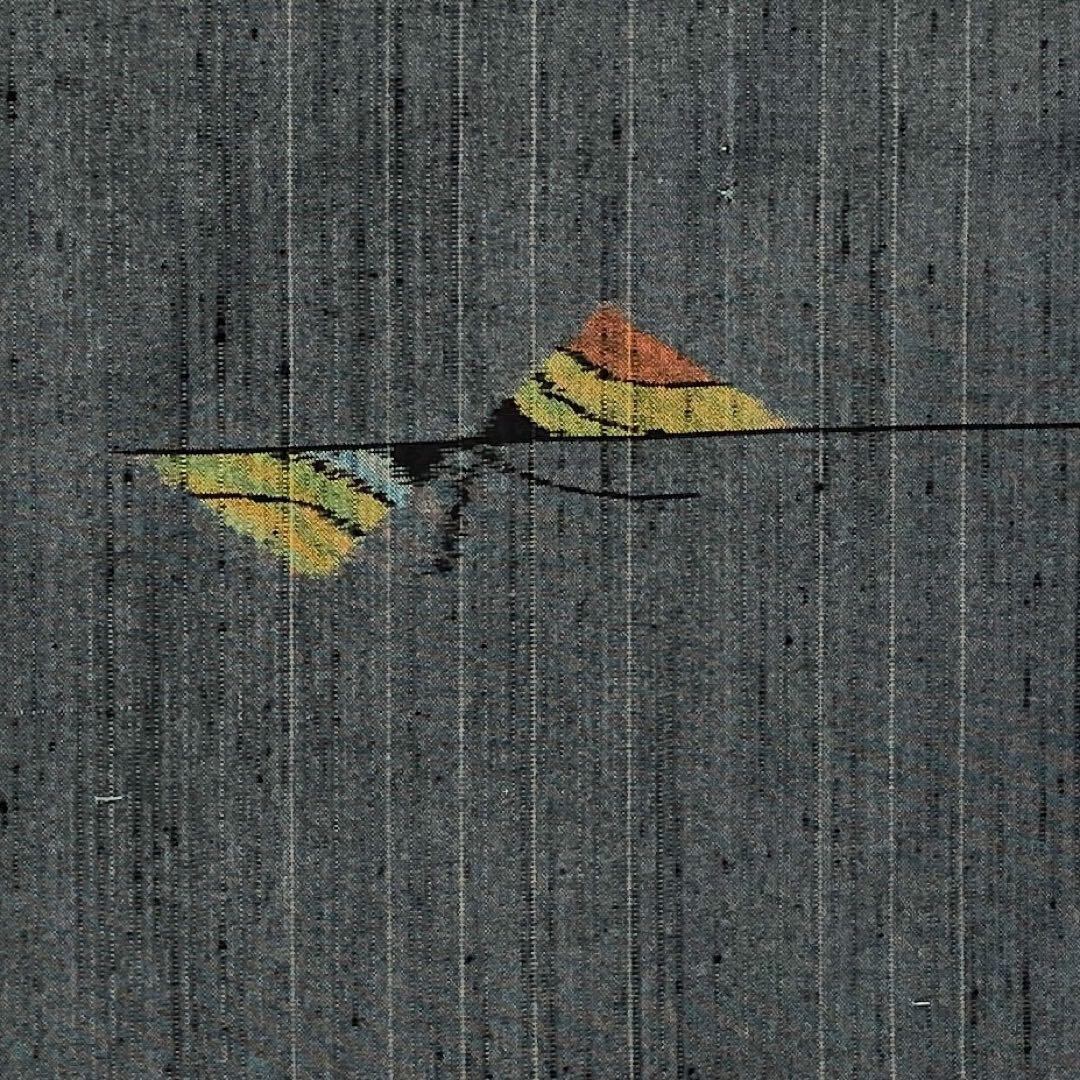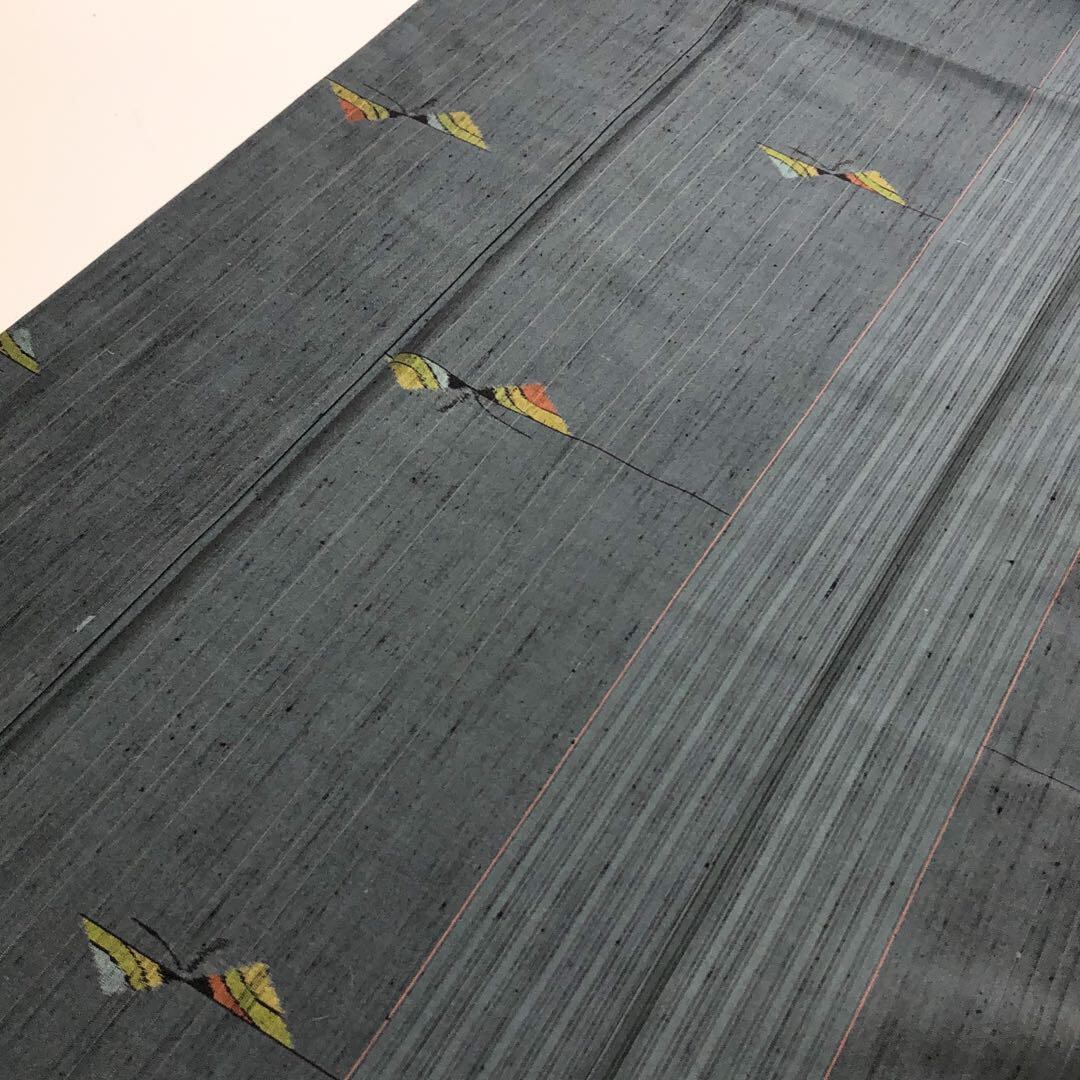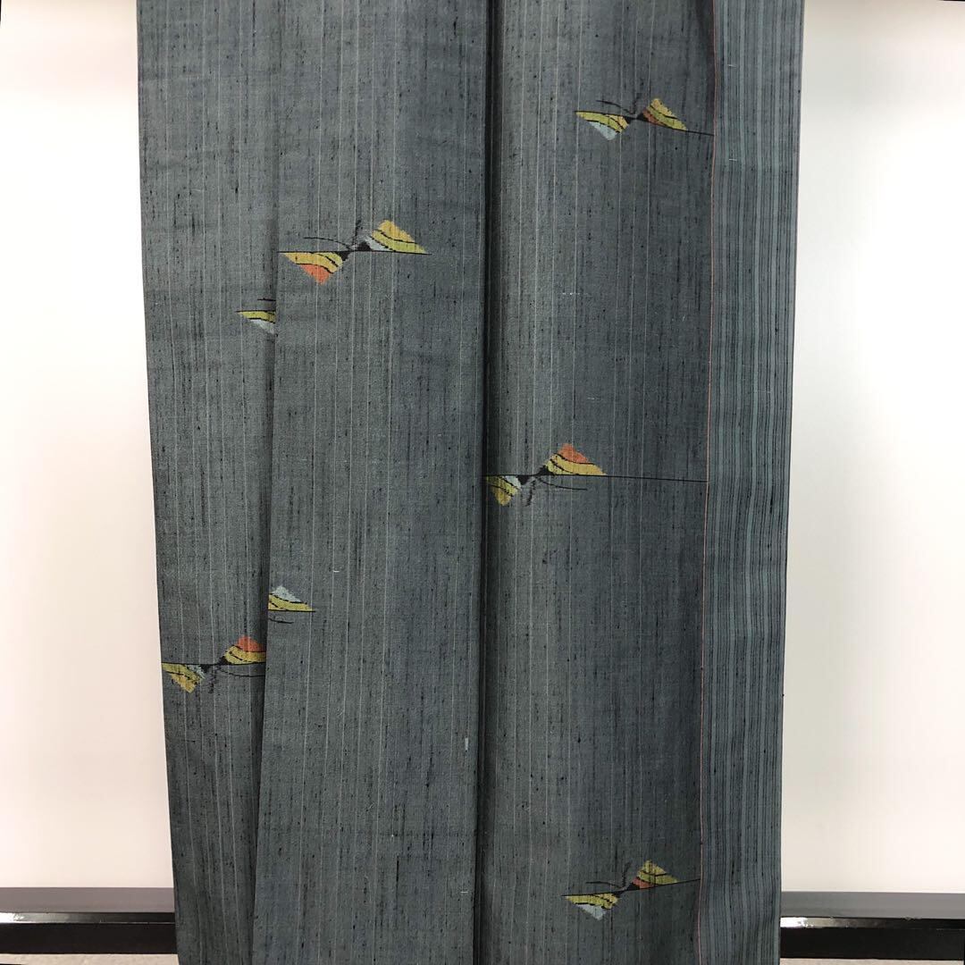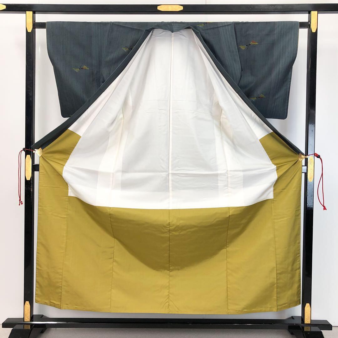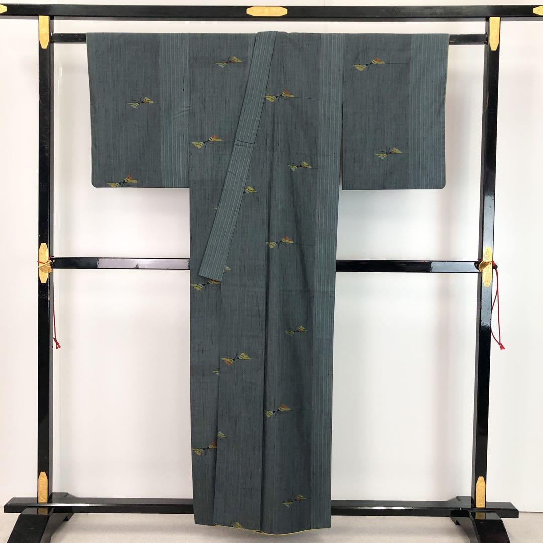 御召納戸色の落ち着きのあるお色味に蝶々の柄裄がデザインされた素敵なお品でございます。