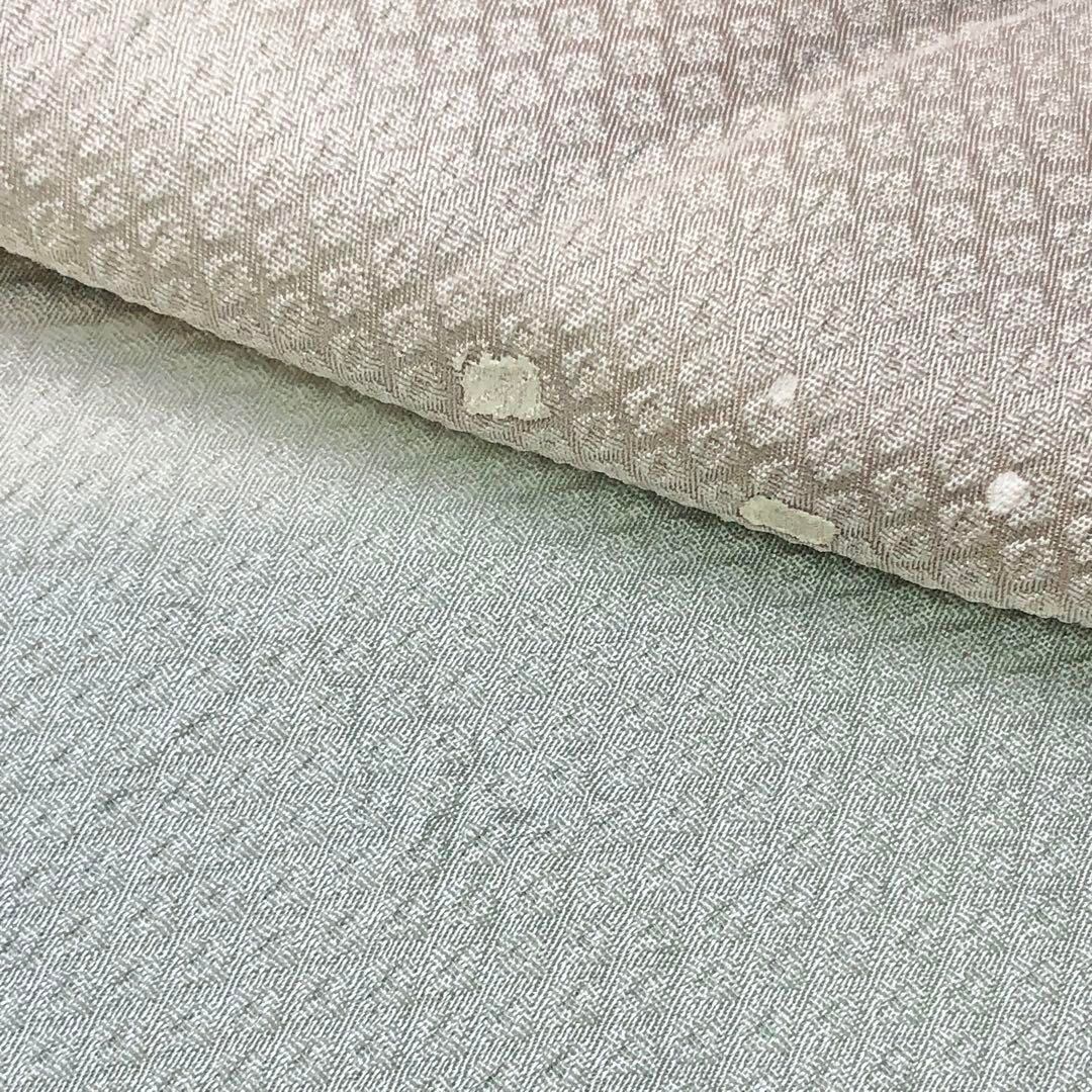 薄浅葱鼠色ベースの染め分けに曲線模様がデザインされた品のある素敵な柄裄のお品でございます。
