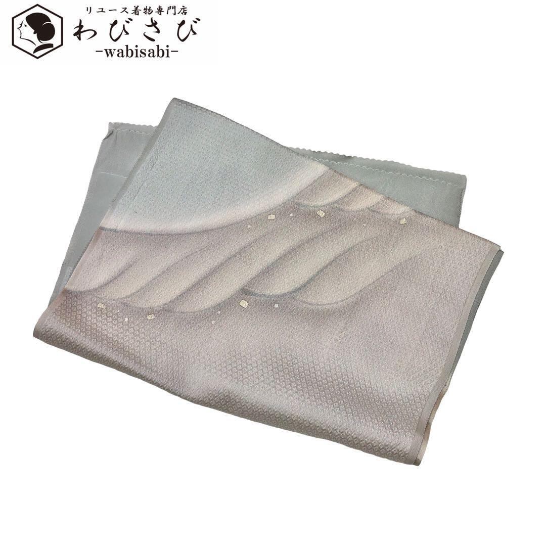和装小物 帯揚げ 正絹 染め分け 曲線模様 薄浅葱鼠色 金彩 C-5681 着物 きもの kimono 和服 和装 中古 リサイクル着物 【送料無料】