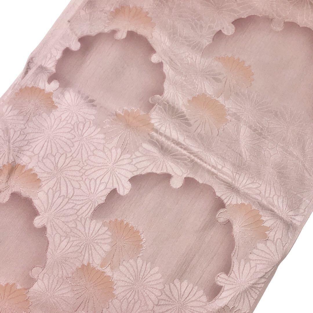 和装小物 帯揚げ 正絹 綸子 暈し 雪輪に菊の花模様 灰桃色 C-5680 着物 きもの kimono 和服 和装 中古 リサイクル着物 【送料無料】