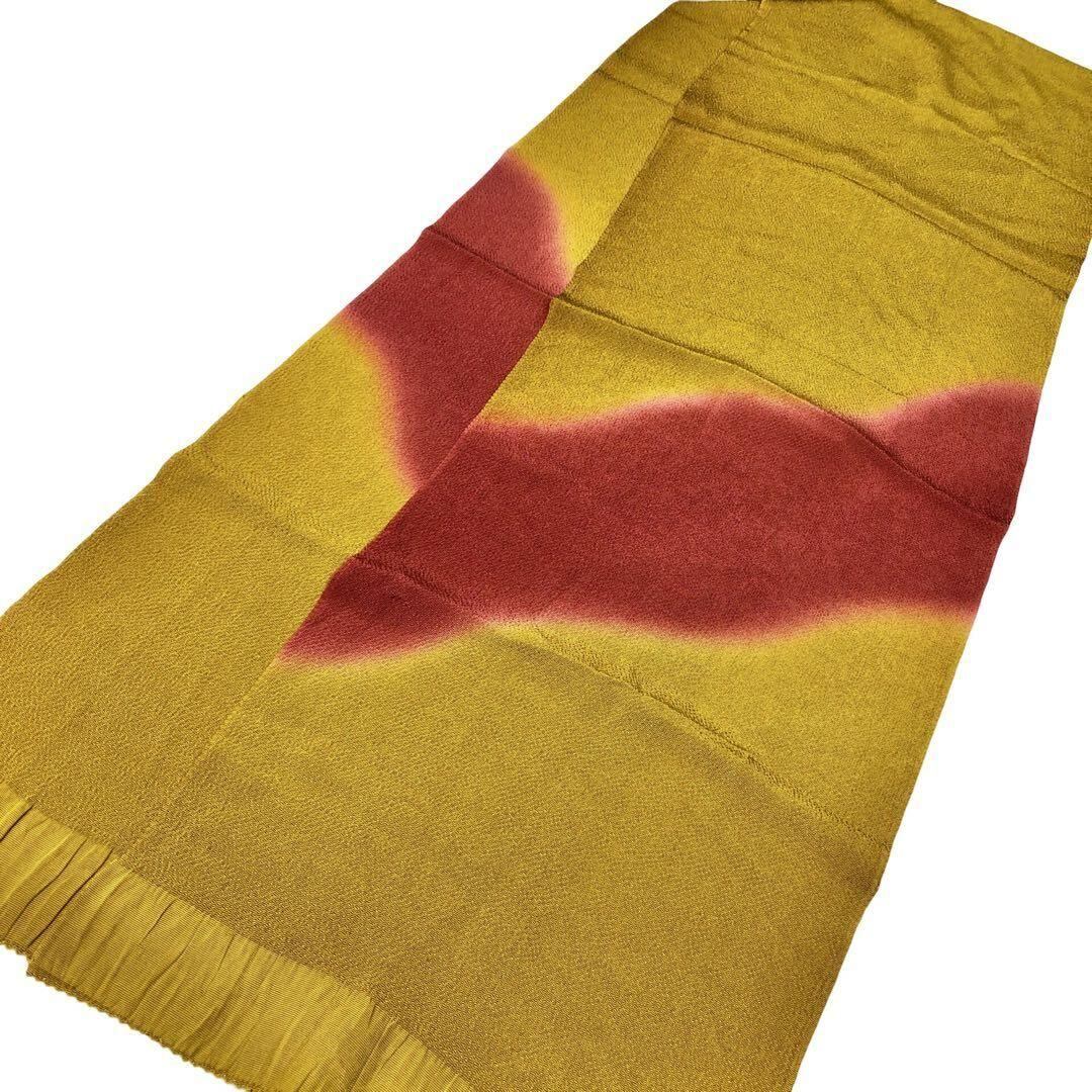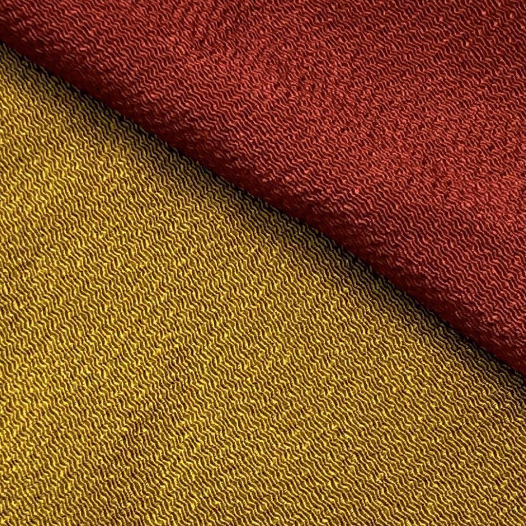 黄土色のお色味の染め分けに曲線模様がデザインされた品のある素敵な柄裄のお品でございます。