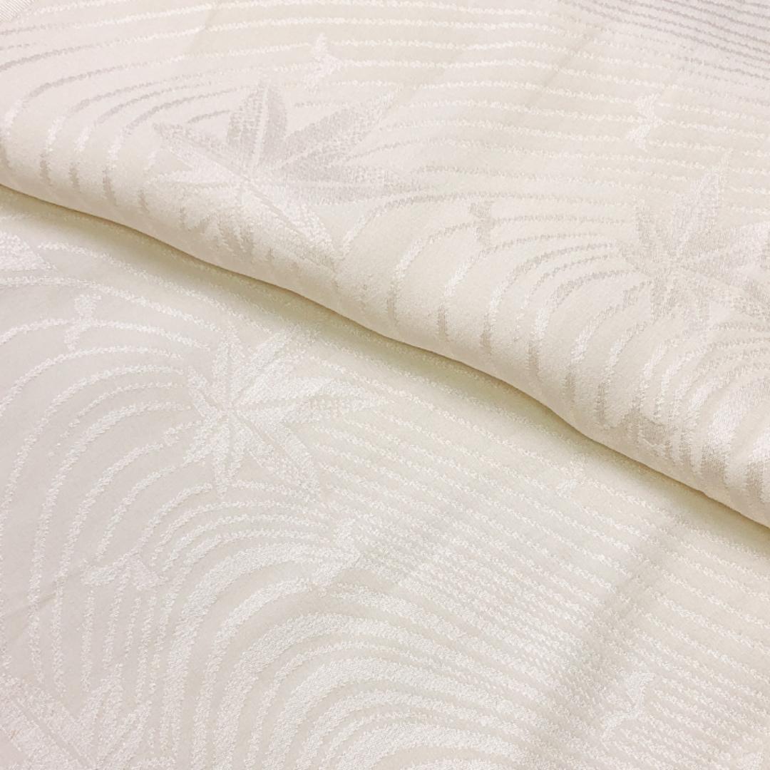 乳白色のお色味に流水に紅葉の柄裄がデザインされた素敵なお品でございます。