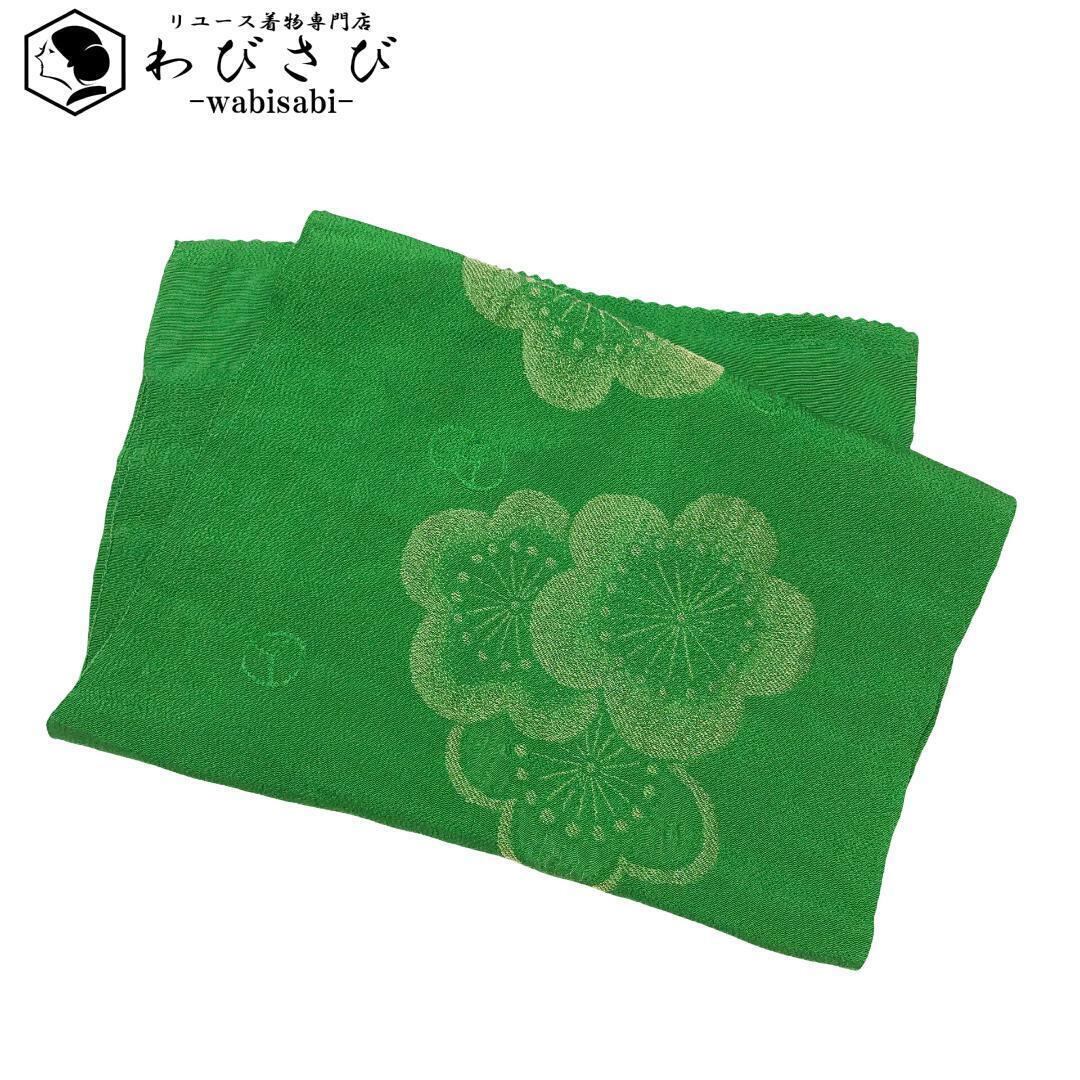 緑色のお色味に梅の花の柄裄がデザインされた素敵なお品でございます。