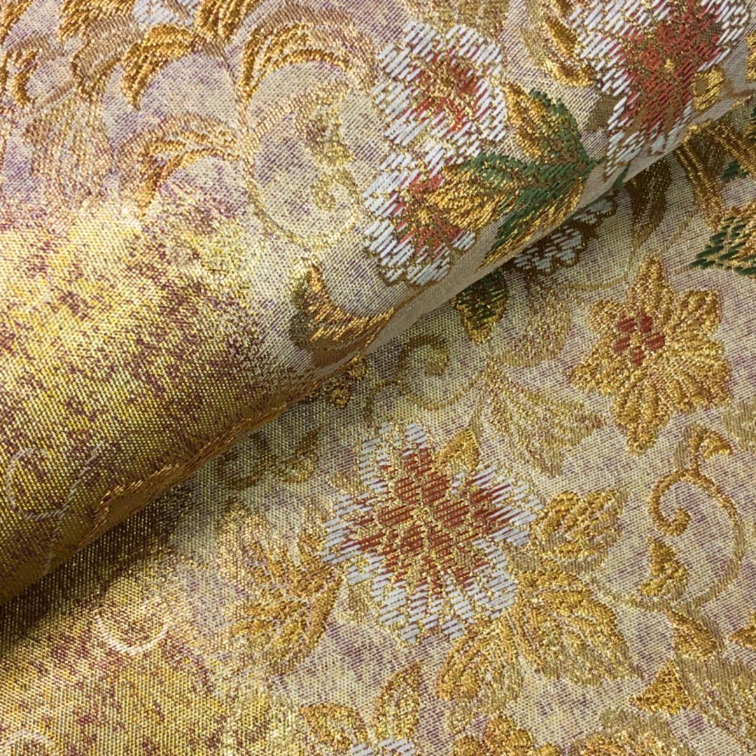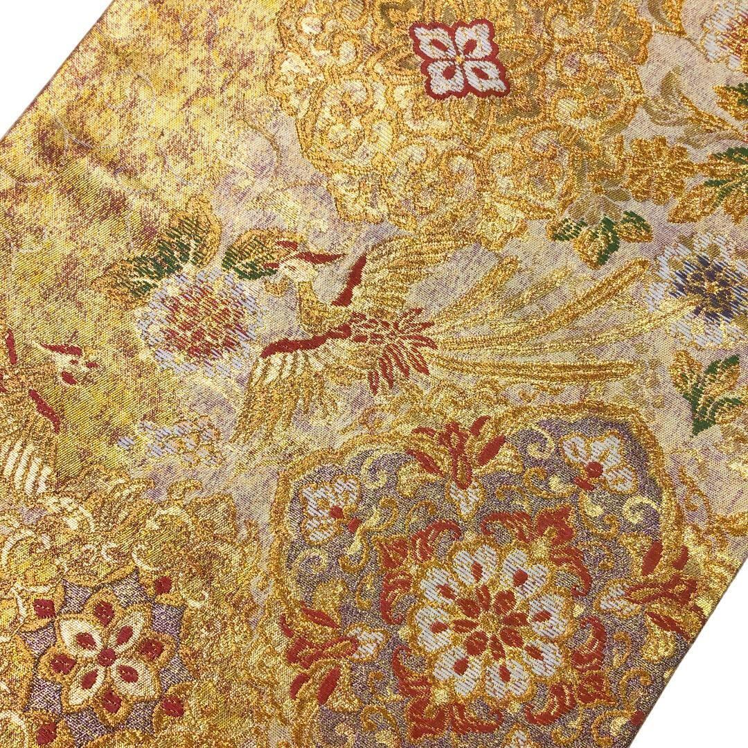 金色ベースの煌びやかな色彩、鳳凰に美しい華柄模様の柄裄がデザインされた素敵なお品でございます。