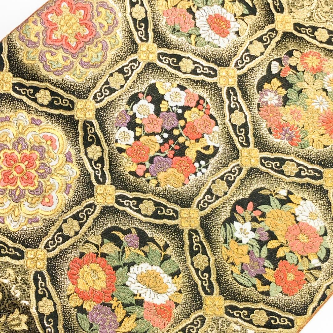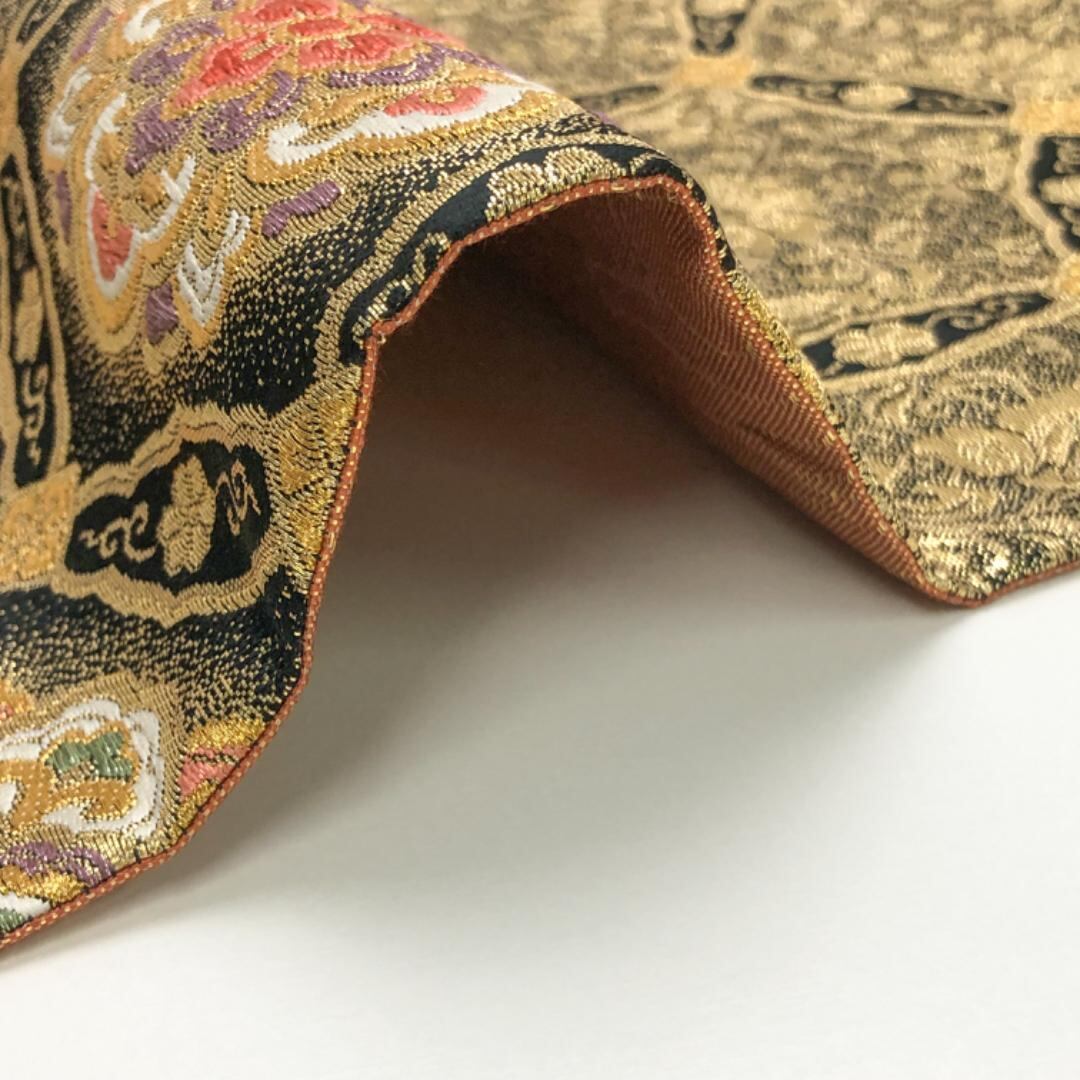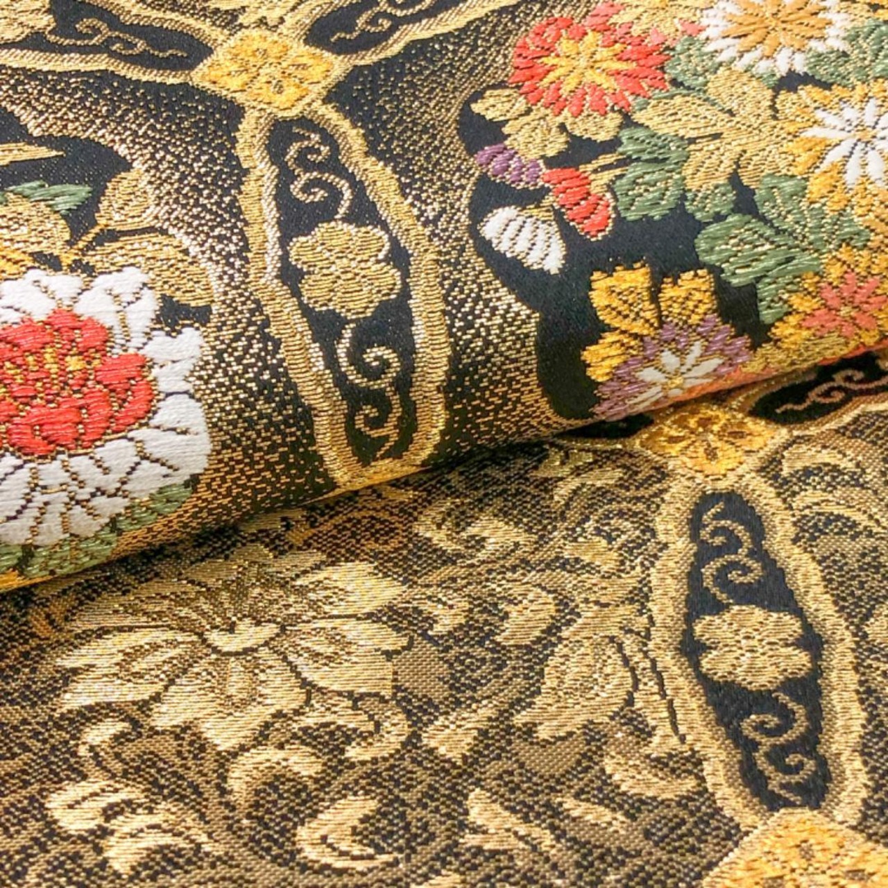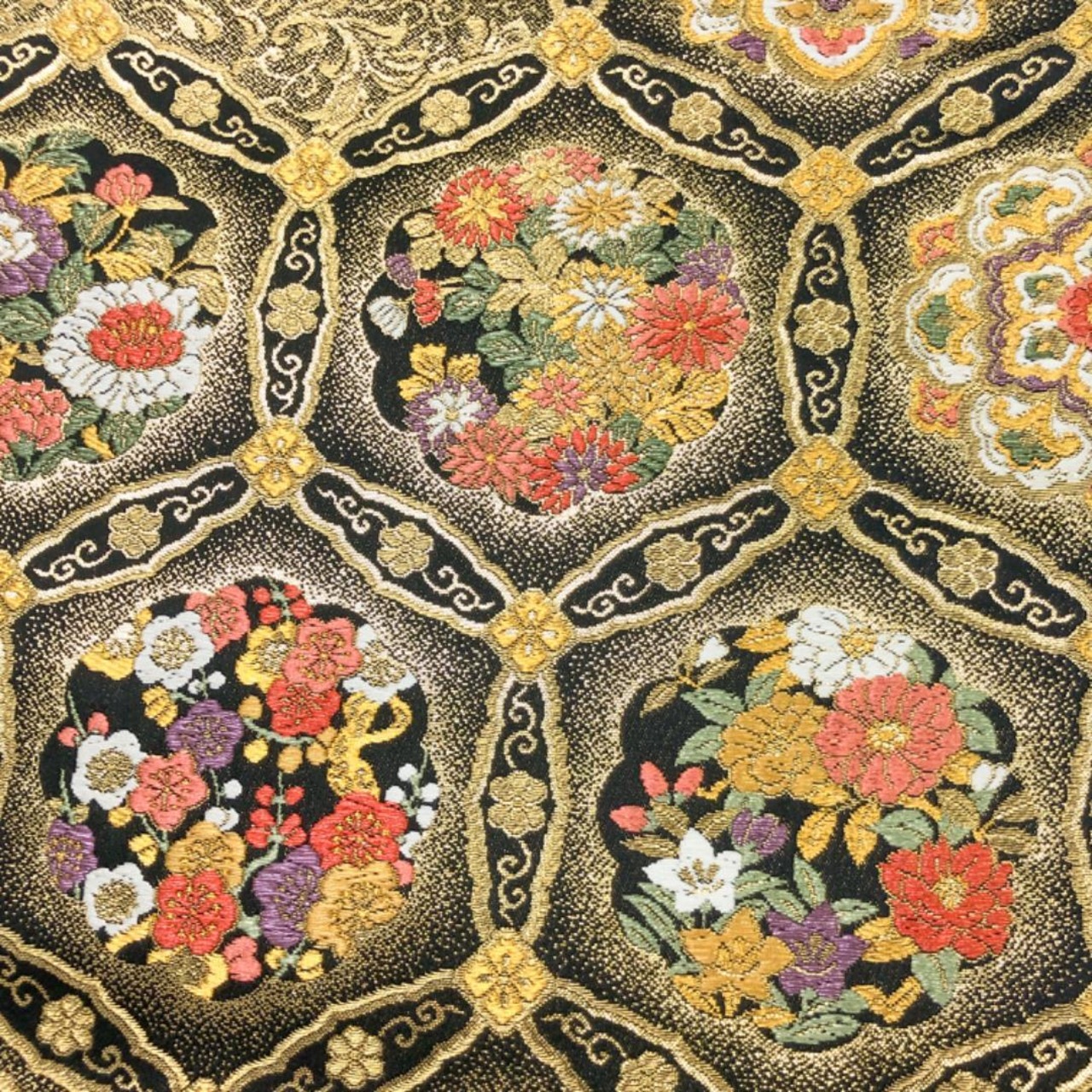 金色ベースの蜀江文様、美しい花柄模様がデザインされた素敵な柄行のお品でございます。
