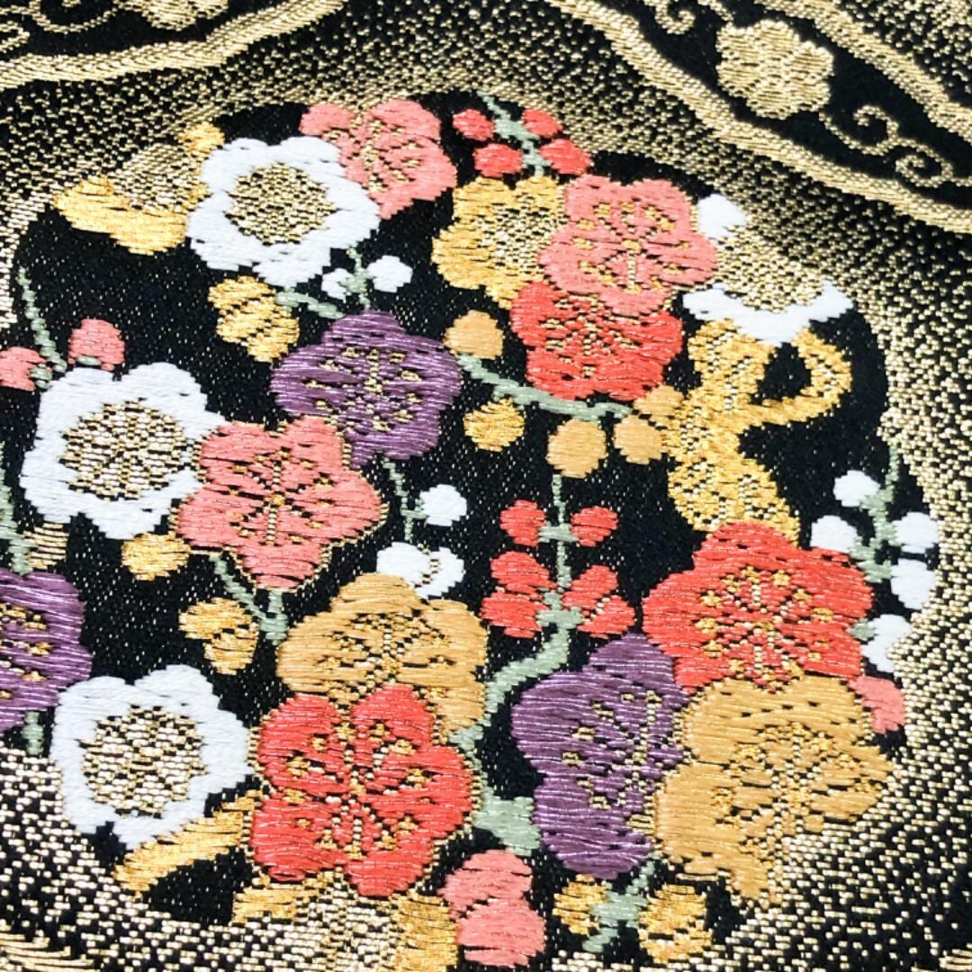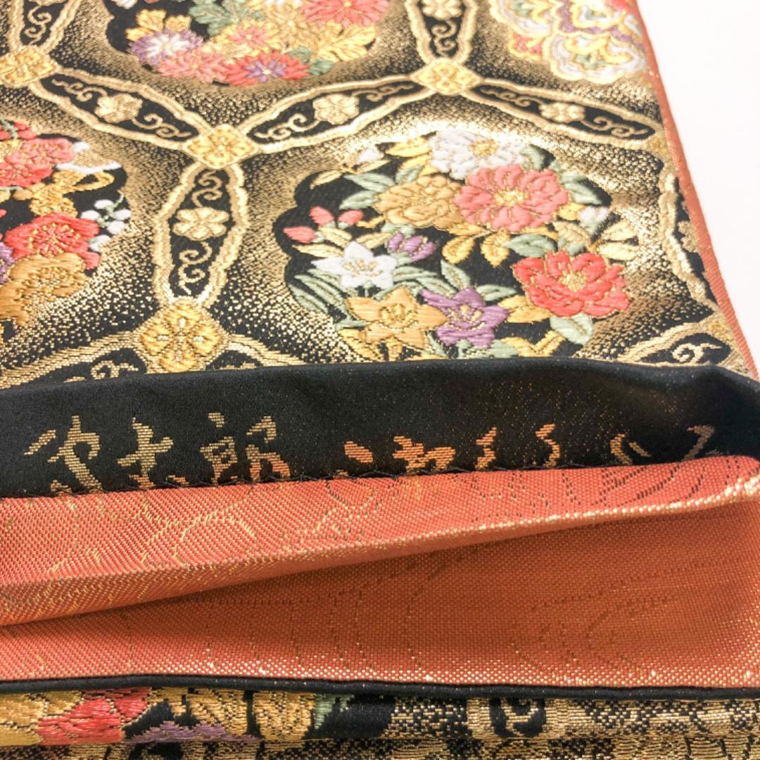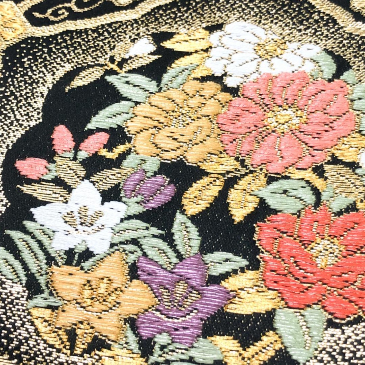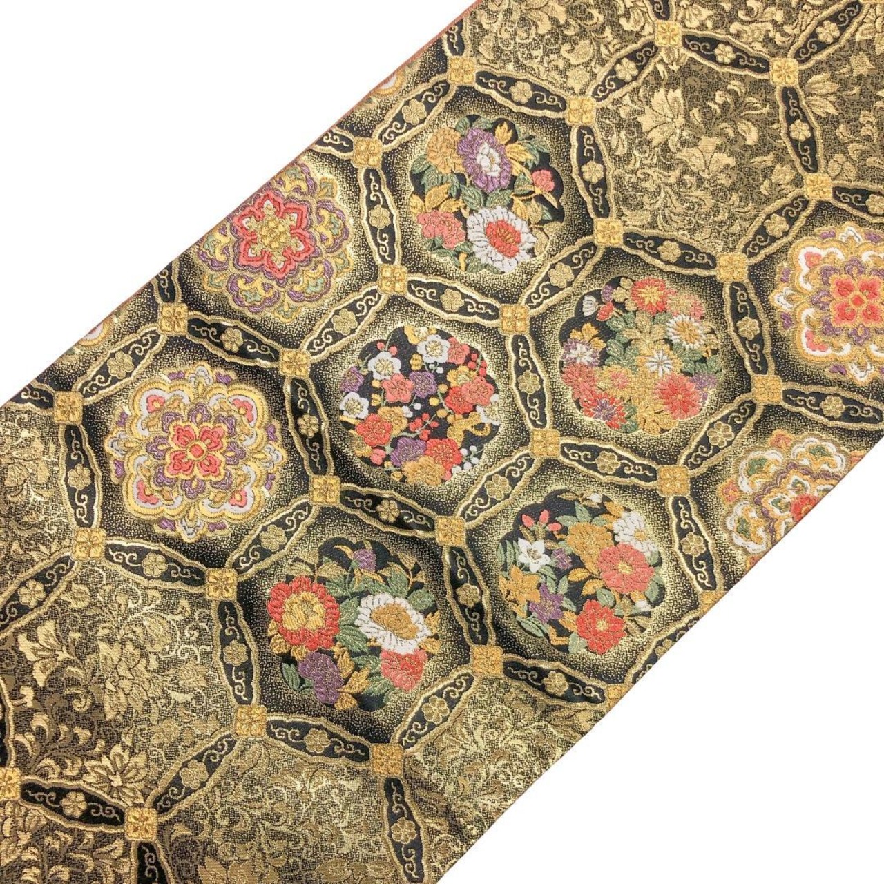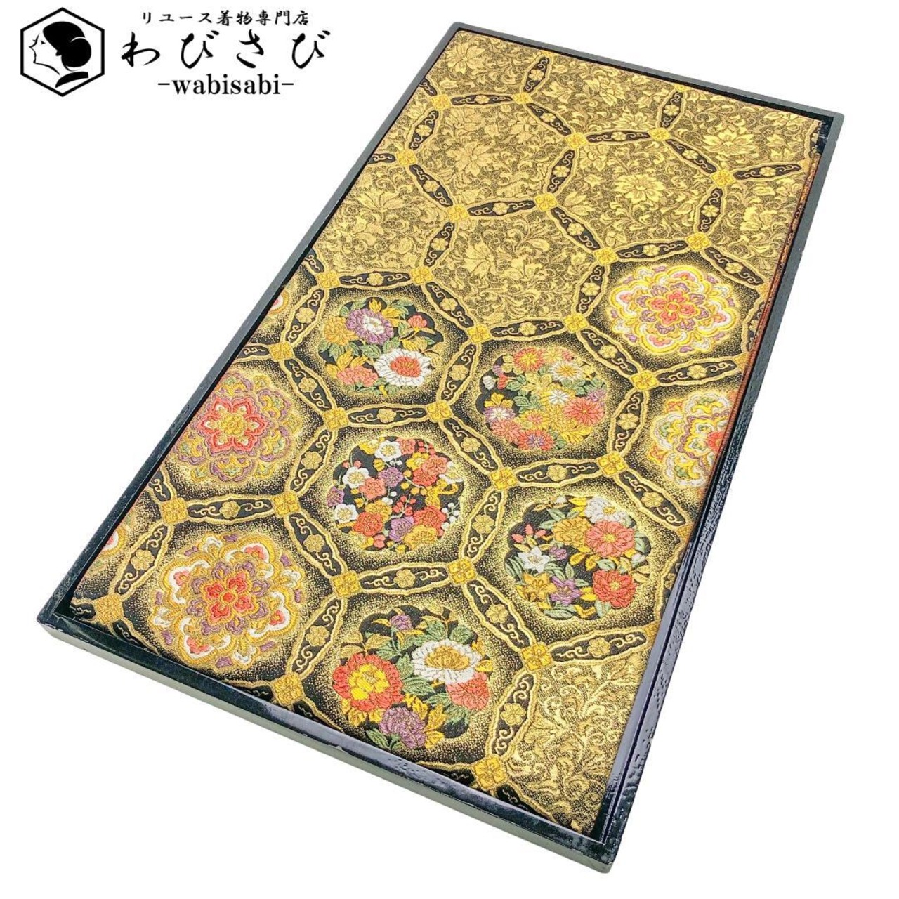 金色ベースの蜀江文様、美しい花柄模様がデザインされた素敵な柄行のお品でございます。