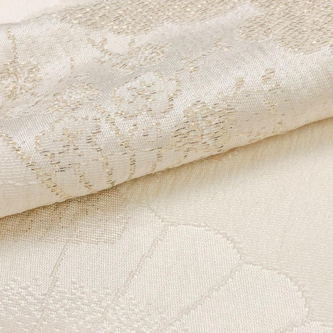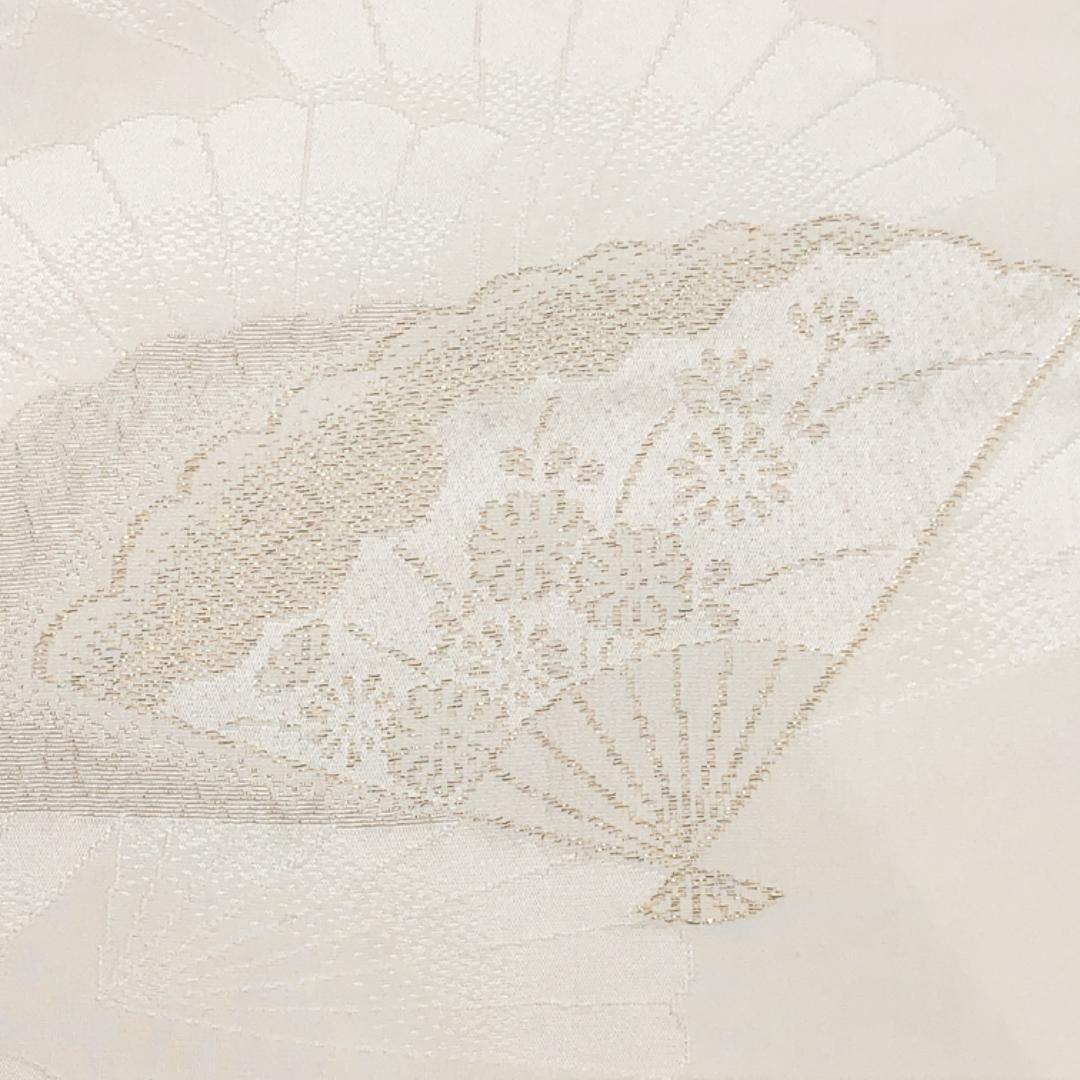 乳白色のお色味に扇に花柄模様がデザインされた品のある素敵な柄裄のお品でございます。