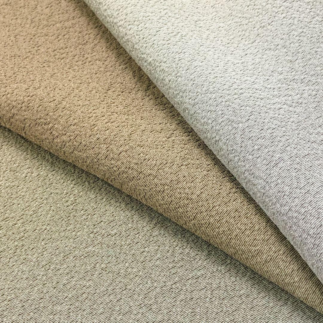 紅消鼠色ベースのお色味の縮緬に上品なグラデーションがデザインされた素敵な柄裄のお品でございます。