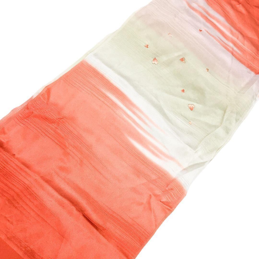 和装小物 帯揚げ 正絹 花びら模様 刺繍 金糸 銀朱色 綸子 C-5712 着物 きもの kimono 和服 和装 中古 リサイクル着物 【送料無料】