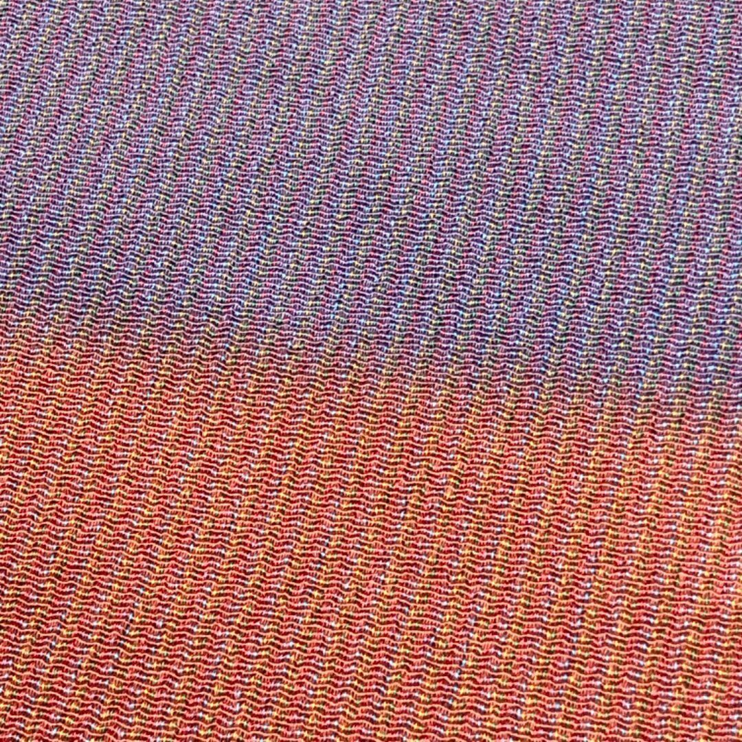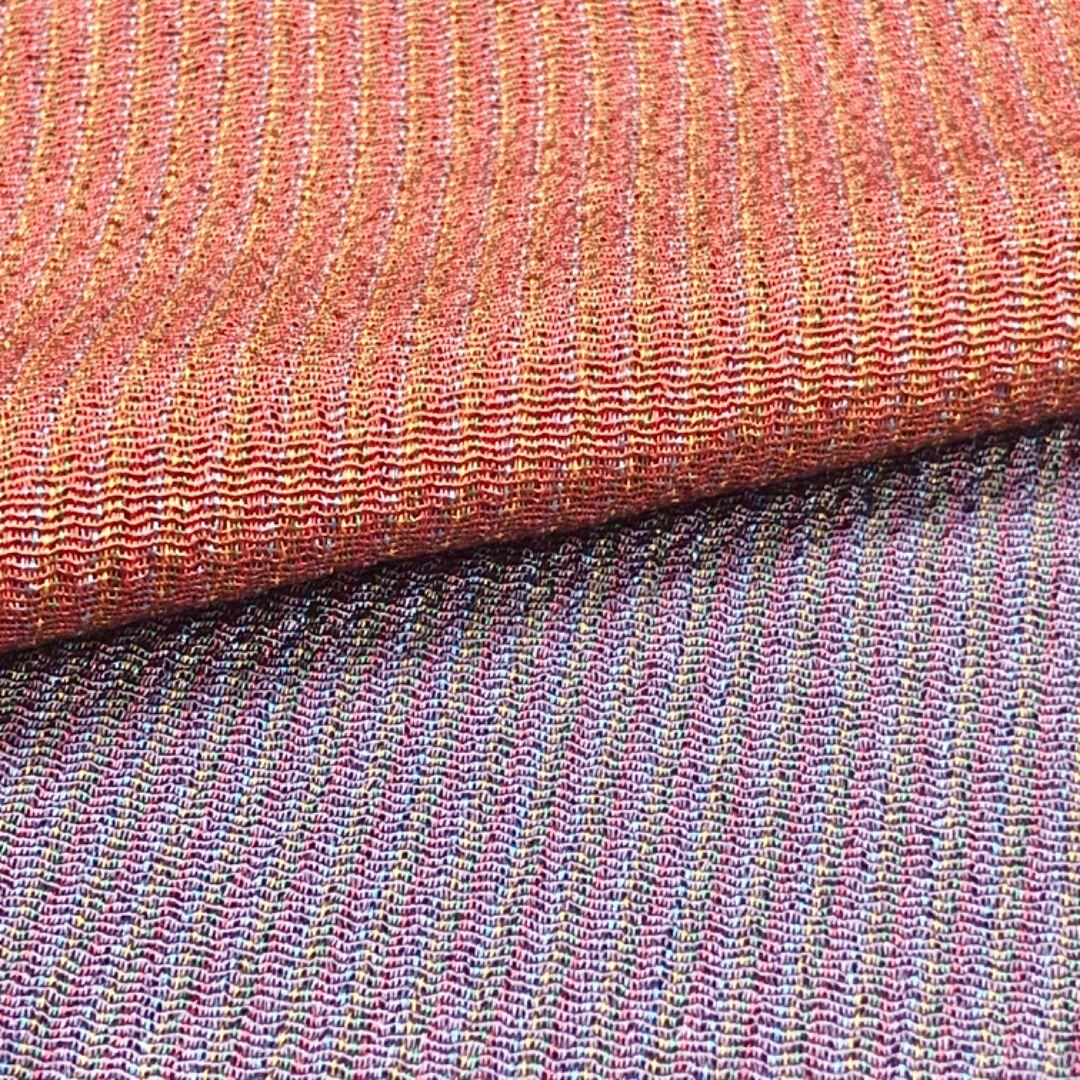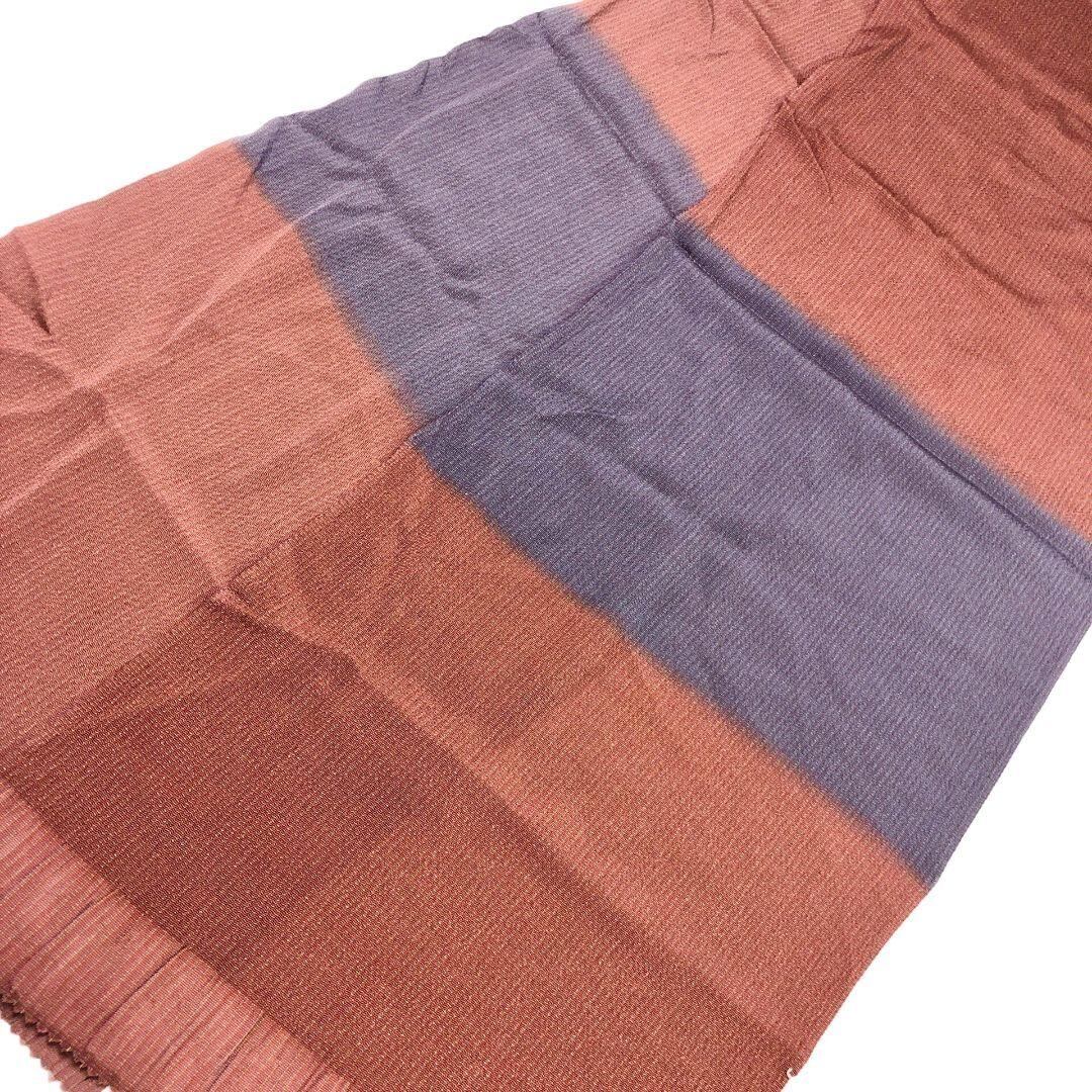 帯紅色と藤鼠色の染め分けのお色味の素敵なお品でございます。