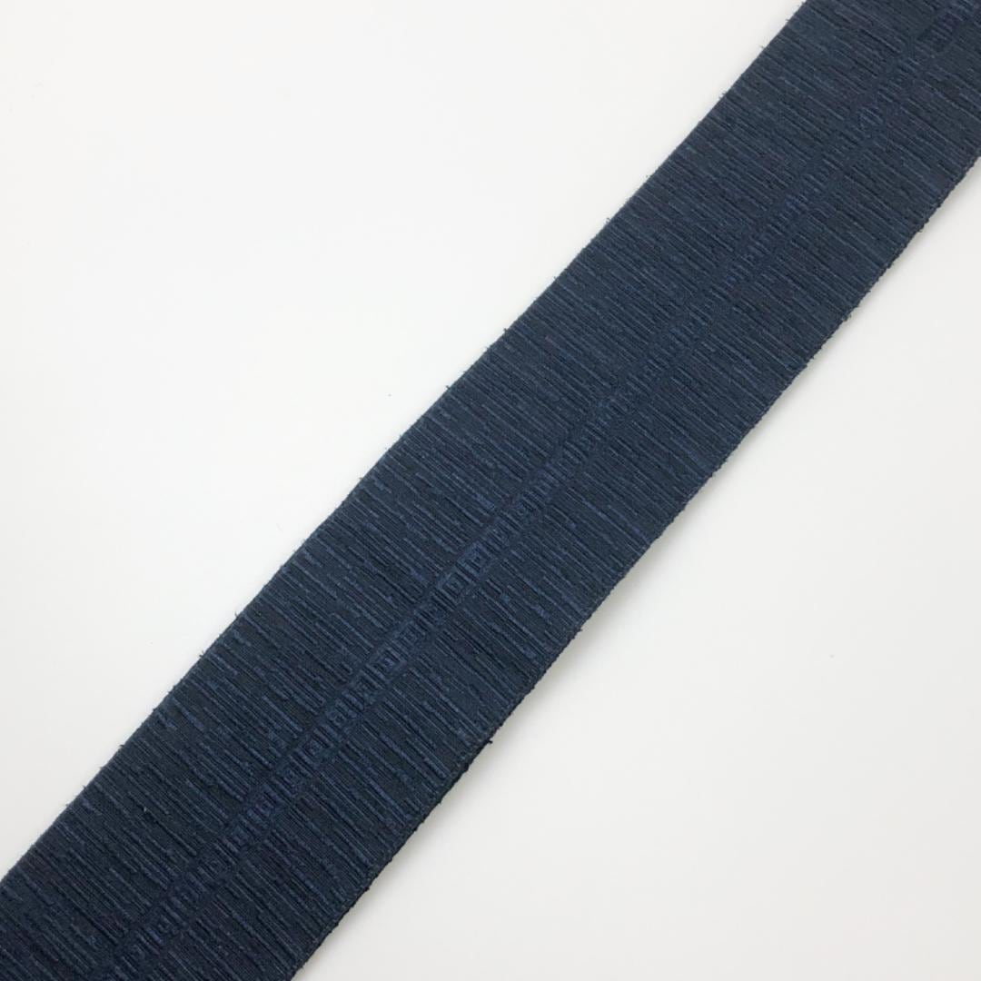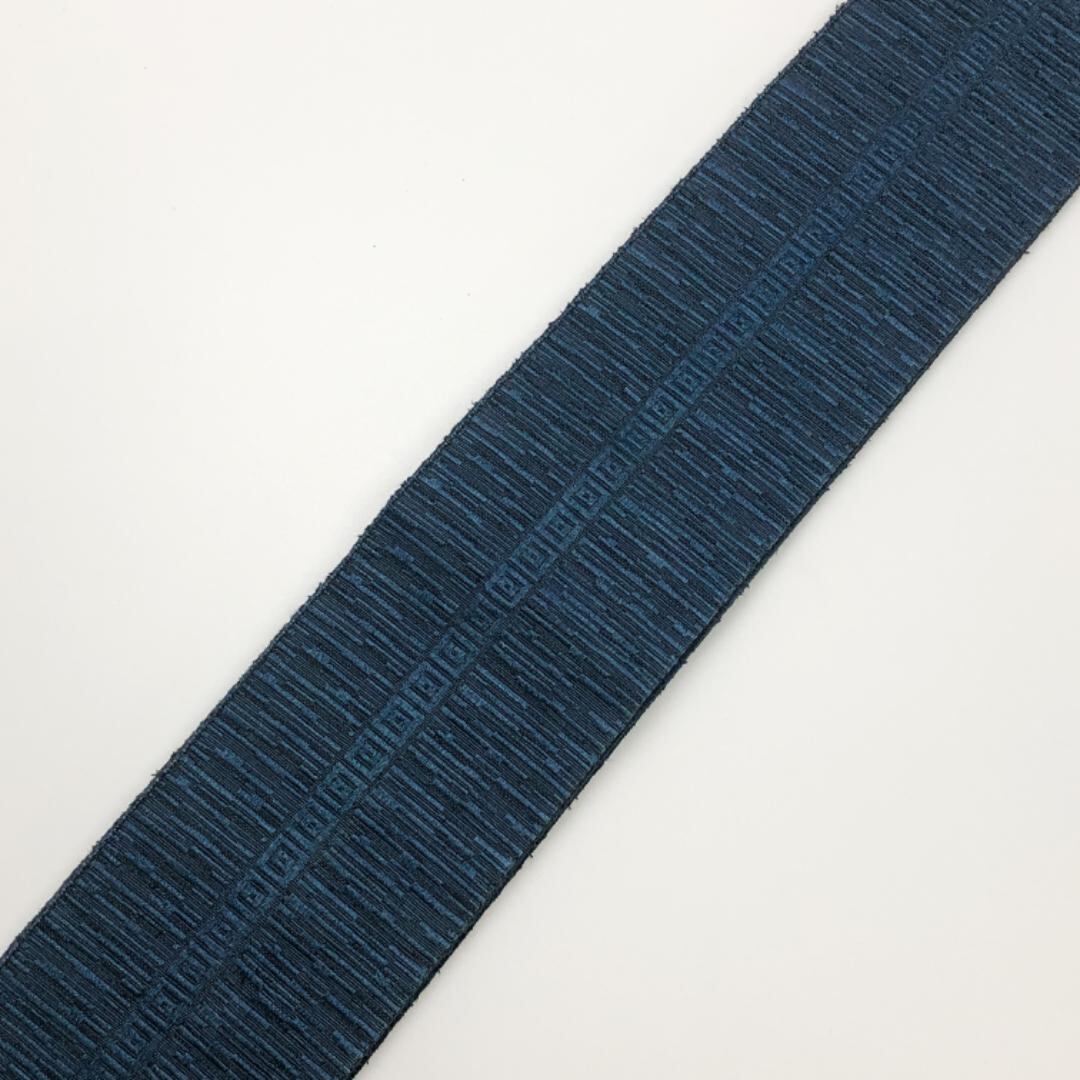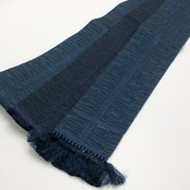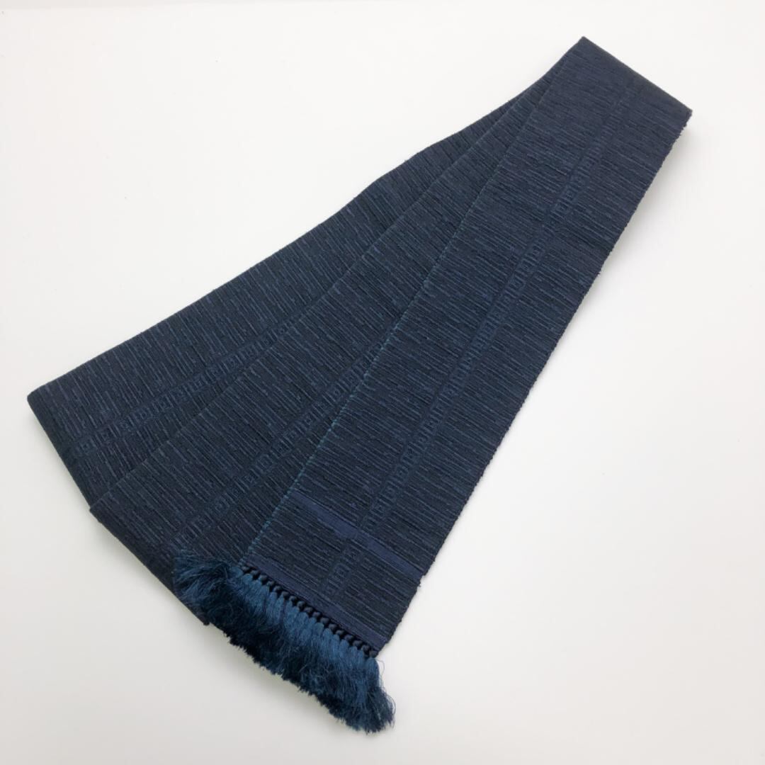 濃紺色の落ち着きのある青味のお色、四角の織模様がデザインされた素敵なお品でございます。