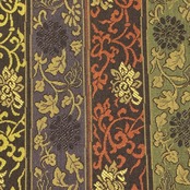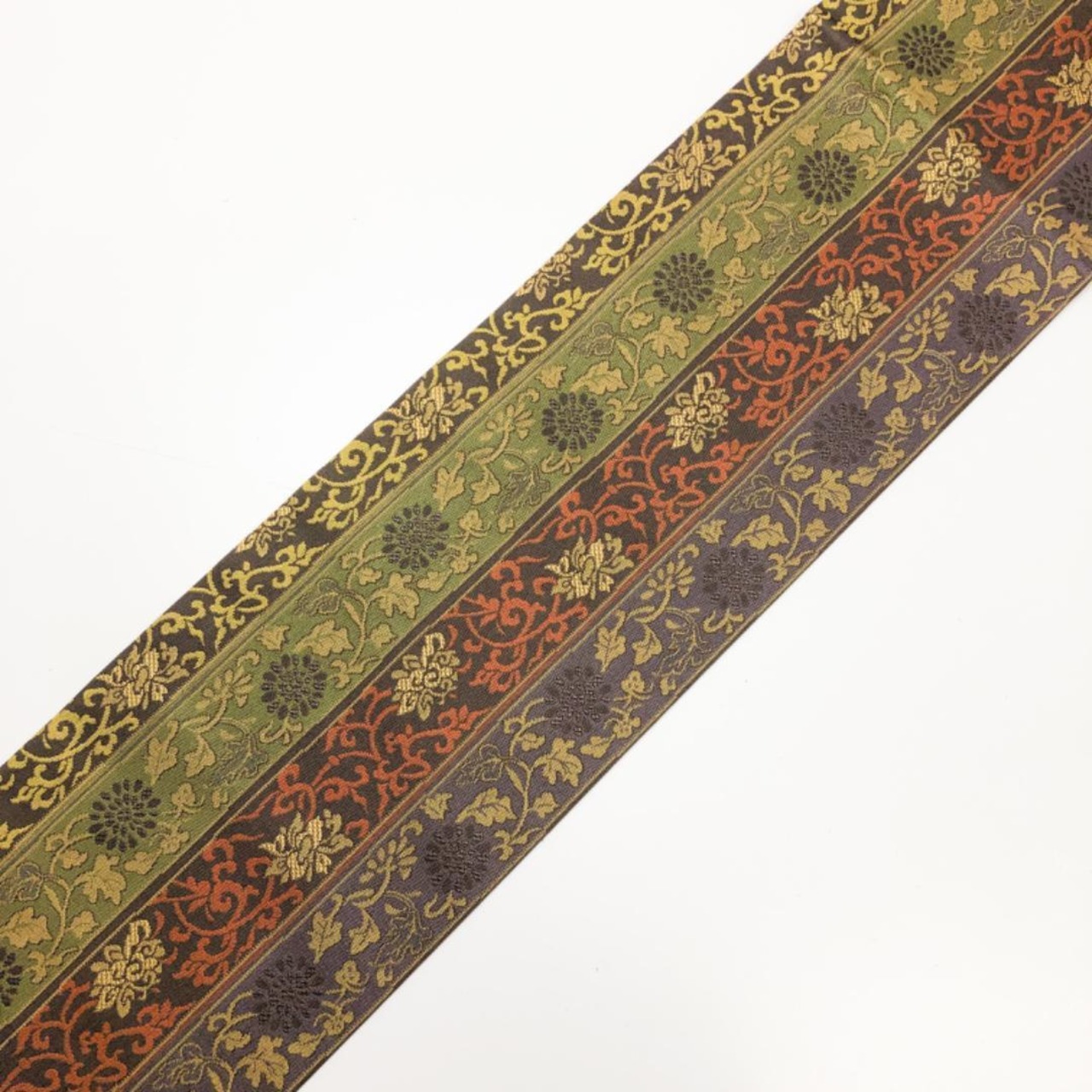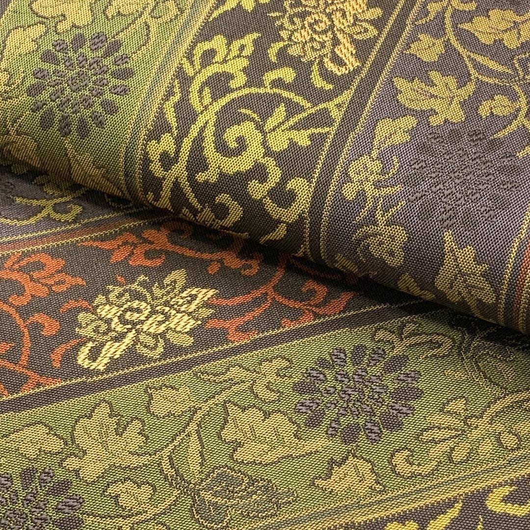 落ちついたお色味色彩、縦柄の花唐草模様の柄裄がデザインされた雰囲気の良い素敵なお品でございます。