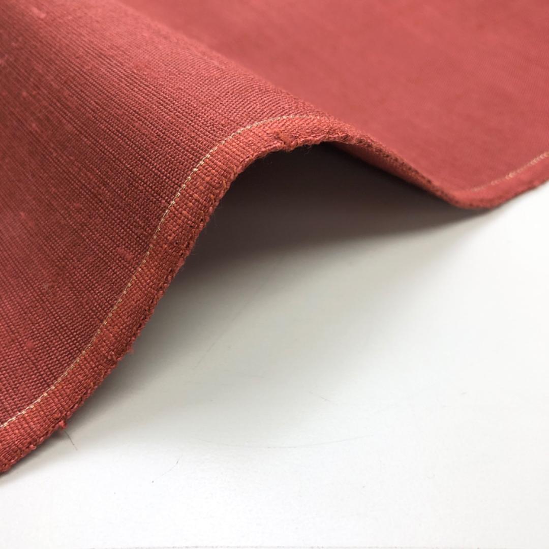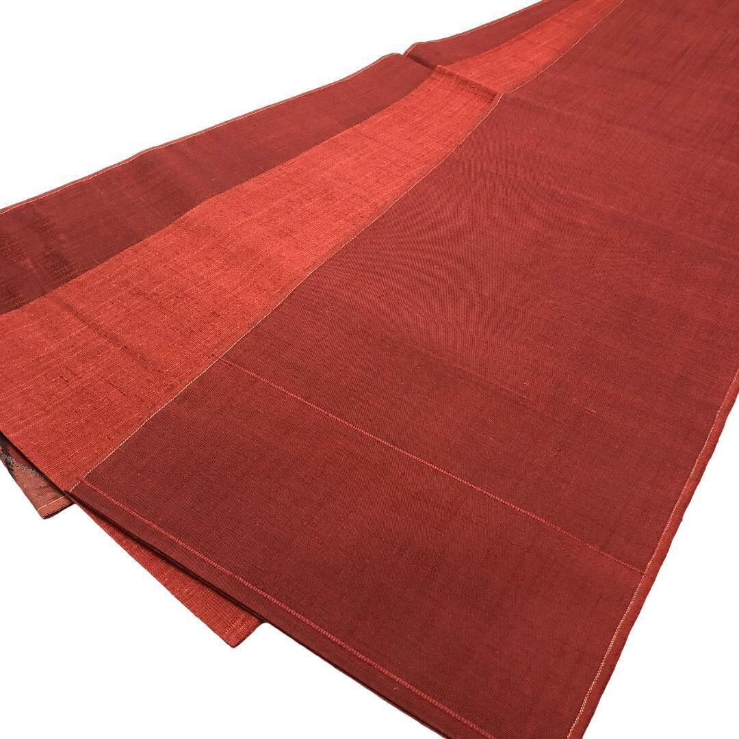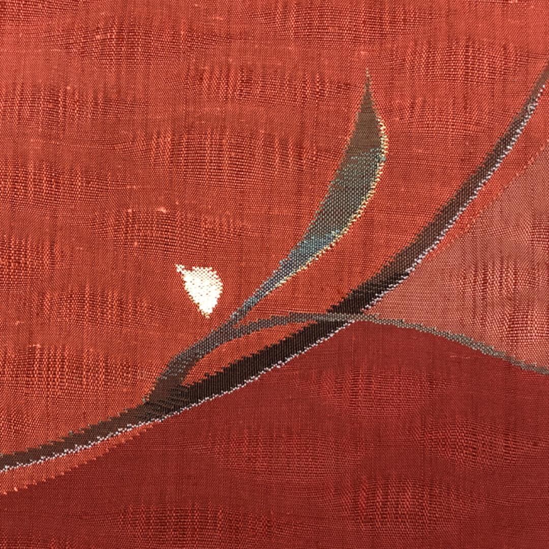 緋銅色ベースのお色味の紬地に上品な花模様がデザインされたすくい織の雰囲気の良い素敵なお品でございます。