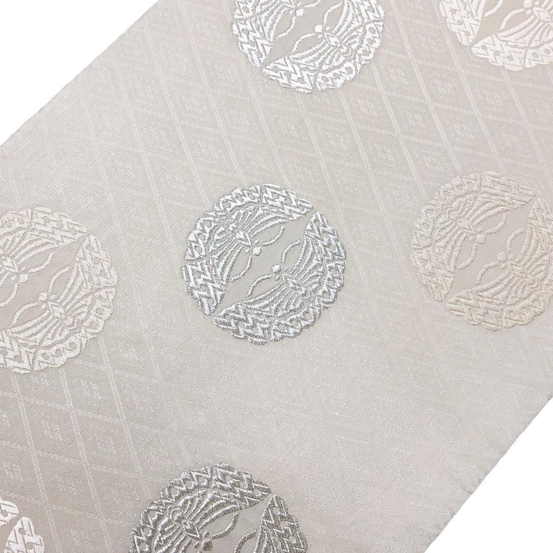 袋帯 向かい蝶々模様 菱繋ぎ 乳白色 金銀糸 O-4943 着物 きもの kimono 和服 和装 中古 リサイクル着物 【送料無料】