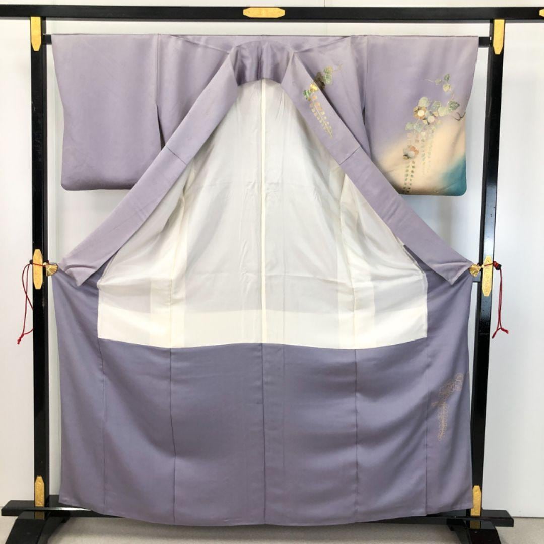 訪問着 辻が花模様 蝶々 螺鈿 金銀彩 グラデーション 紫鼠色 K-4570 着物 きもの kimono 和服 和装 中古 リサイクル着物 【送料無料】
