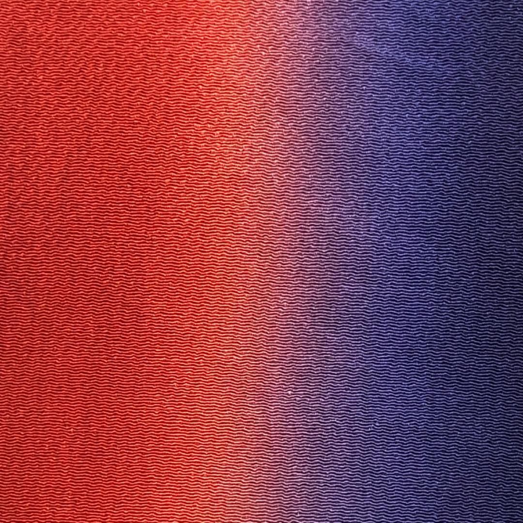 紅海老茶色と濃藍色のお色味の染め分けが素敵な無地の縮緬のお品でございます。