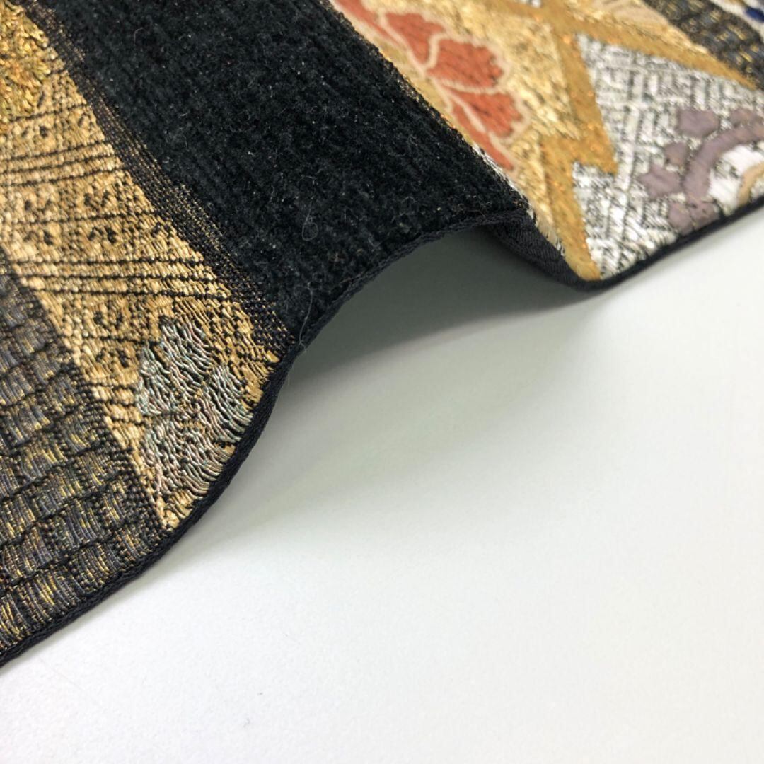 袋帯 岡山林原美術館所蔵品 横段織模様 金銀糸 黒色 O-4954 着物 きもの kimono 和服 和装 中古 リサイクル着物 【送料無料】