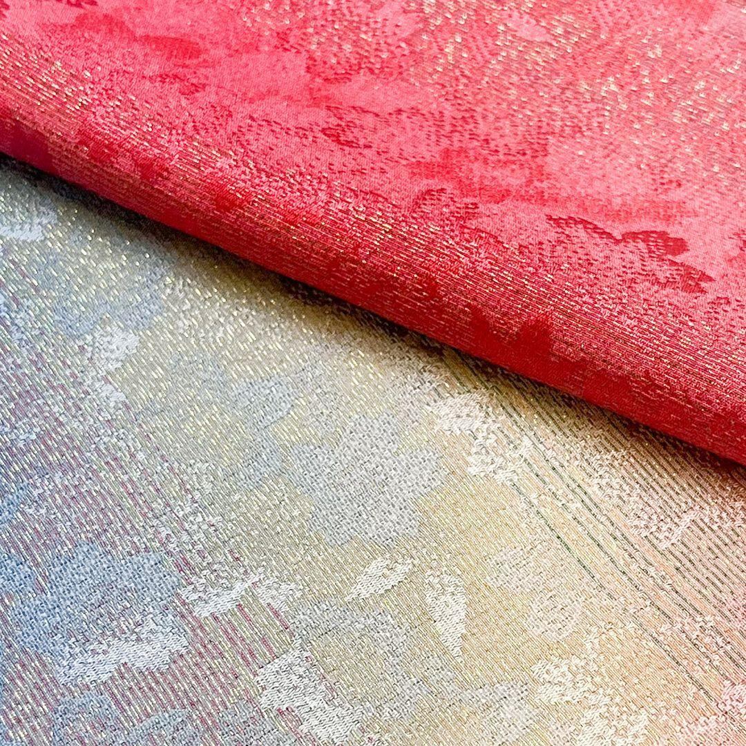 青黛色ベースのお色味の金通しされた美しいグラデーション、桜の花模様の柄裄がデザインされた素敵なお品でございます。