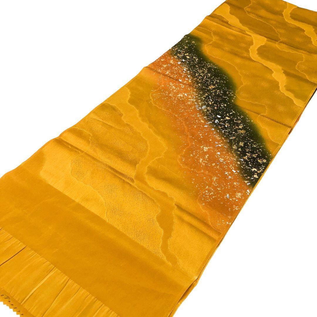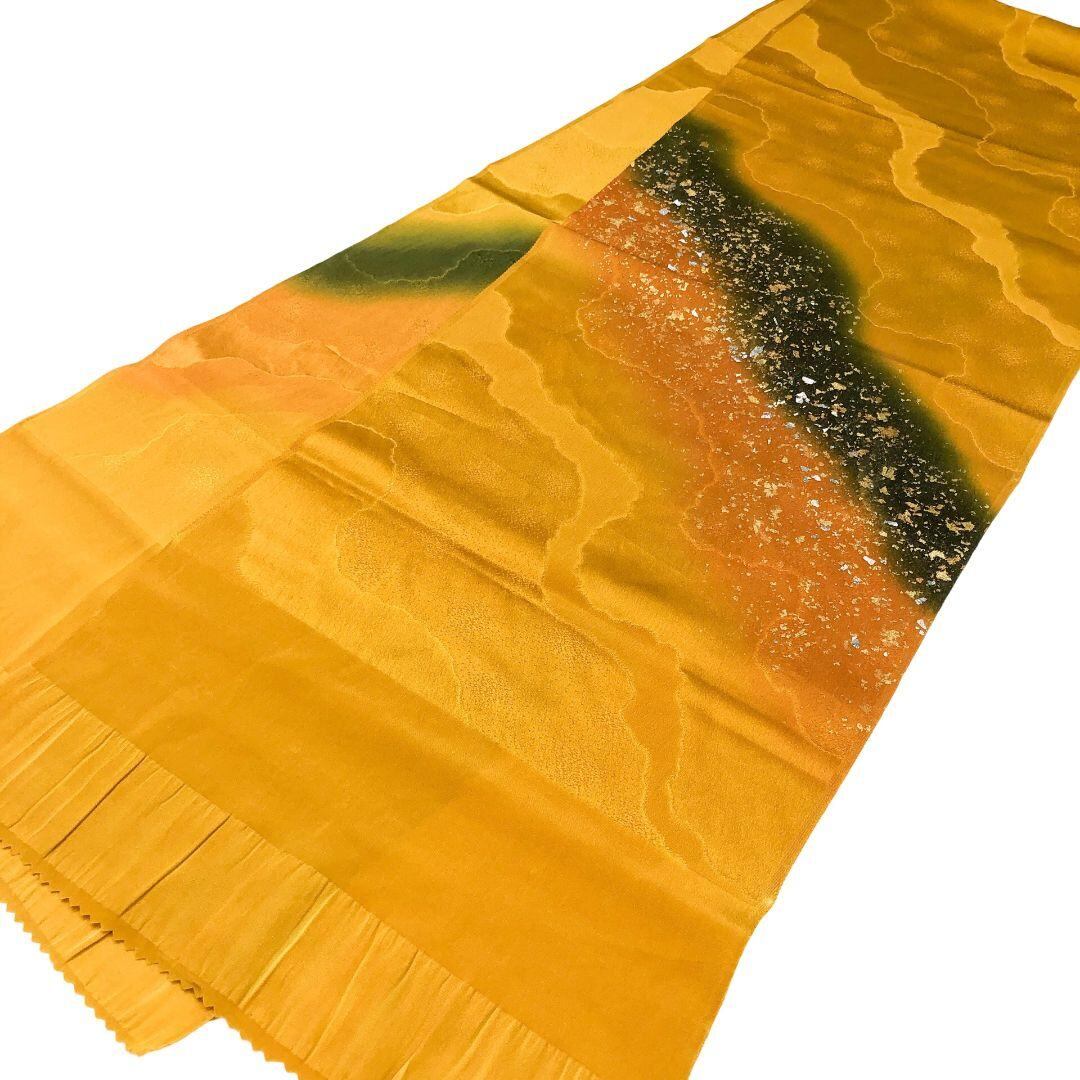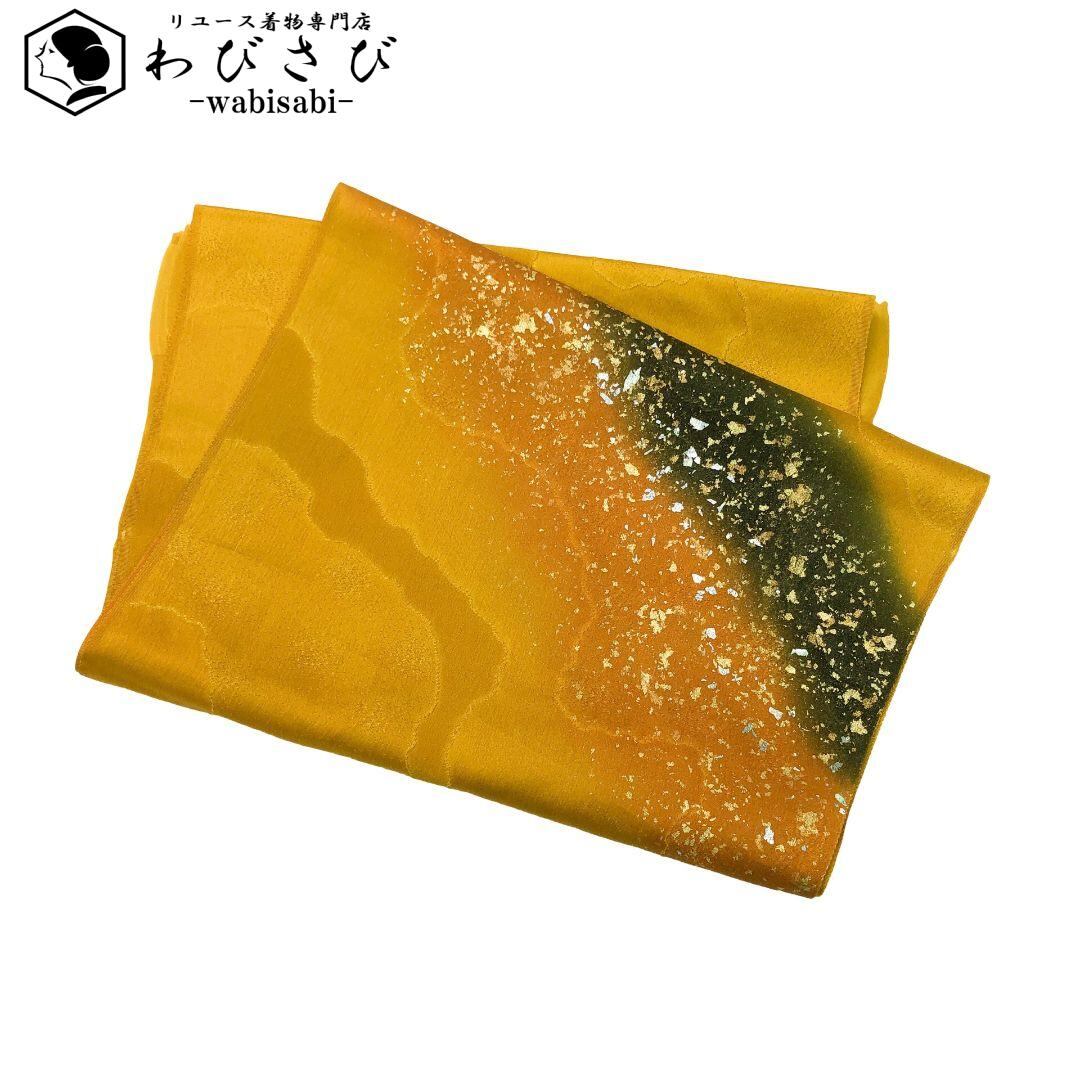 和装小物 帯揚げ 正絹 綸子 リバーシブル 暈し 金彩 濃卵色 C-5741 着物 きもの kimono 和服 和装 中古 リサイクル着物 【送料無料】