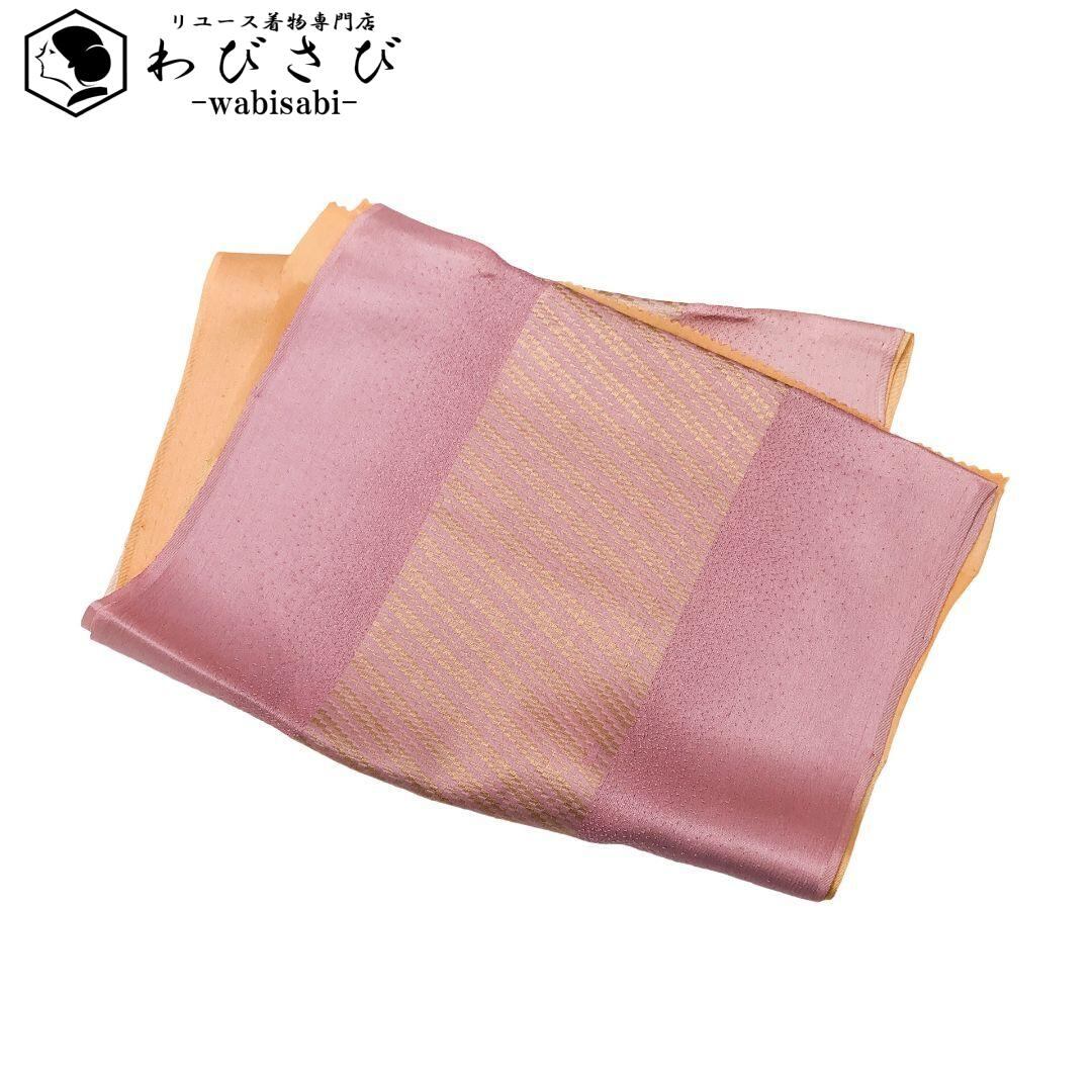 和装小物 帯揚げ 正絹 暈し 斜め縞模様 一斤染色 金糸 C-5749 着物 きもの kimono 和服 和装 中古 リサイクル着物 【送料無料】