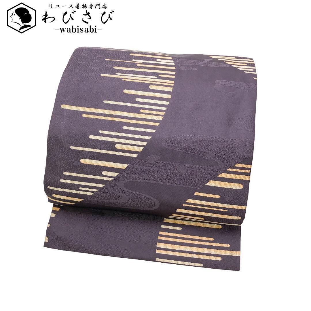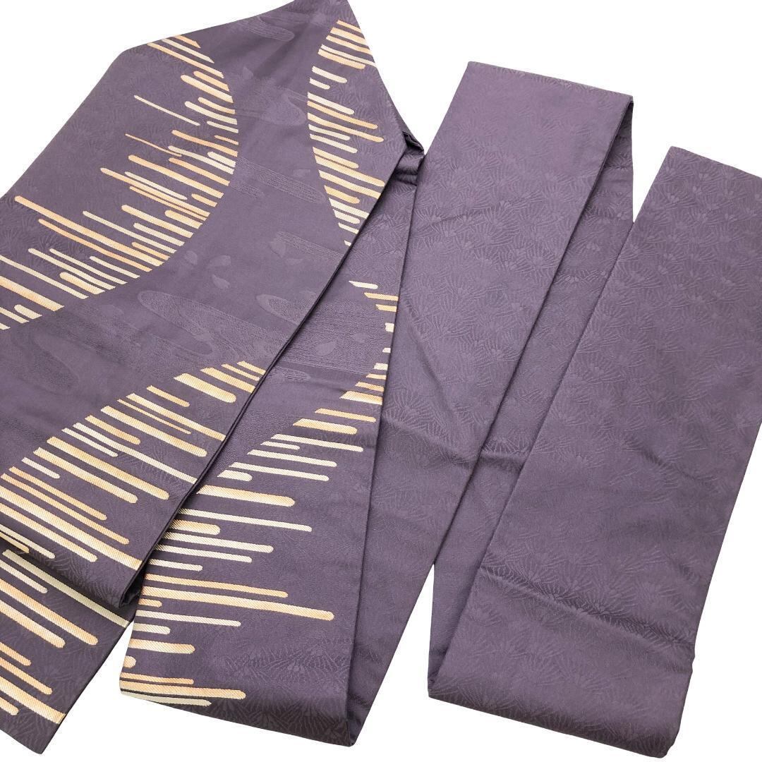 藤鳩羽色のお色味に抽象模様、流水、桜の花びらなどの柄裄がデザインされた雰囲気の良い素敵なお品でございます。