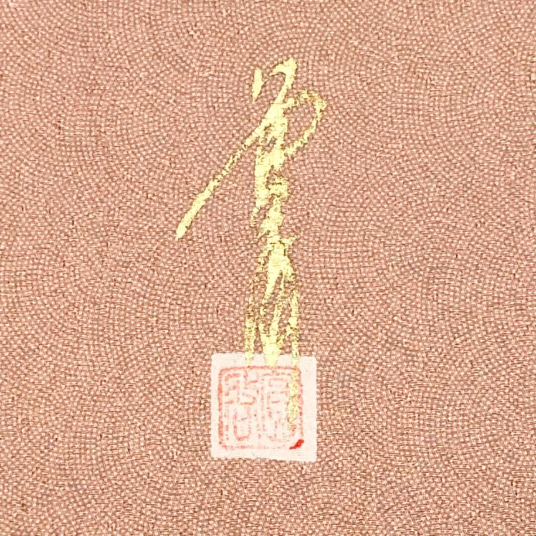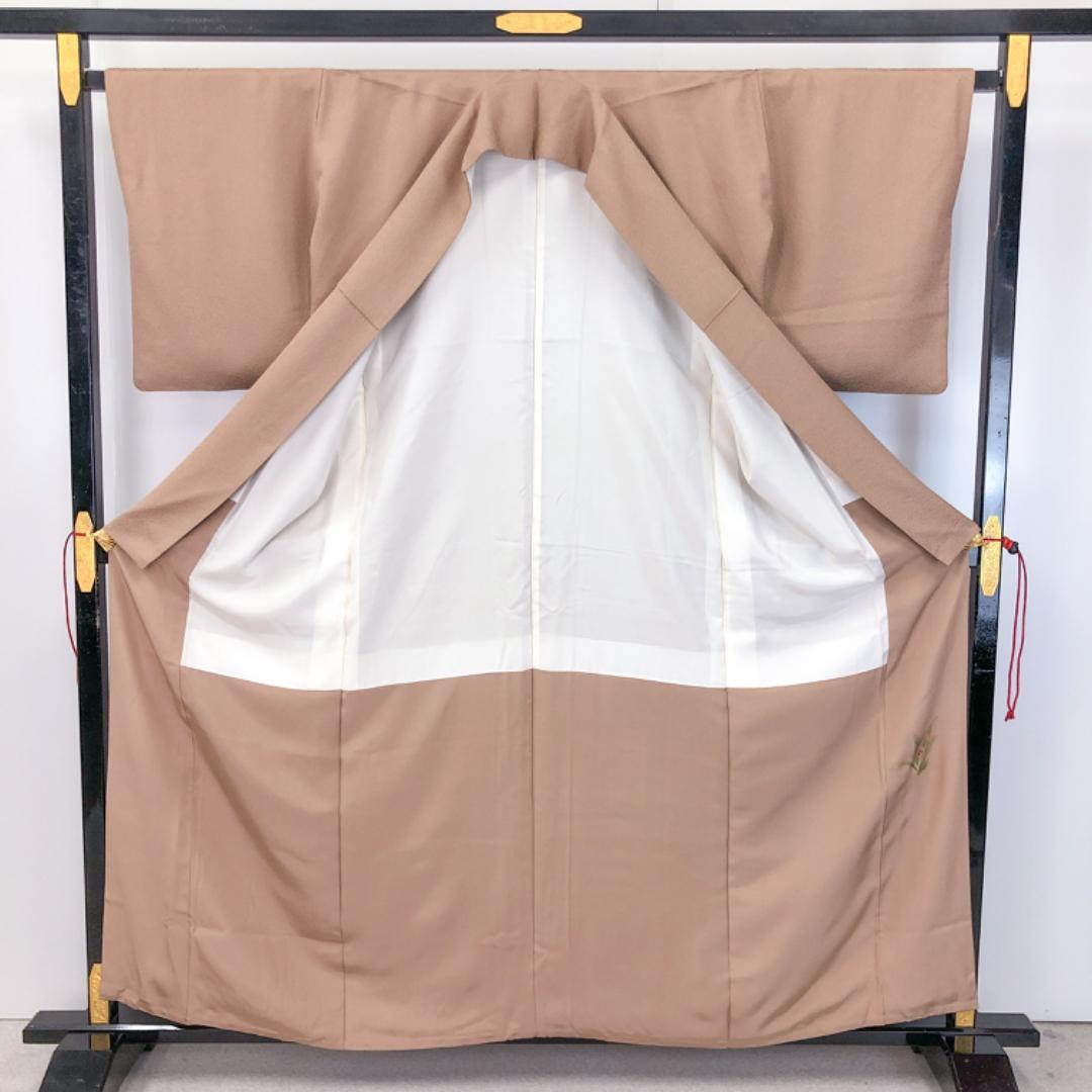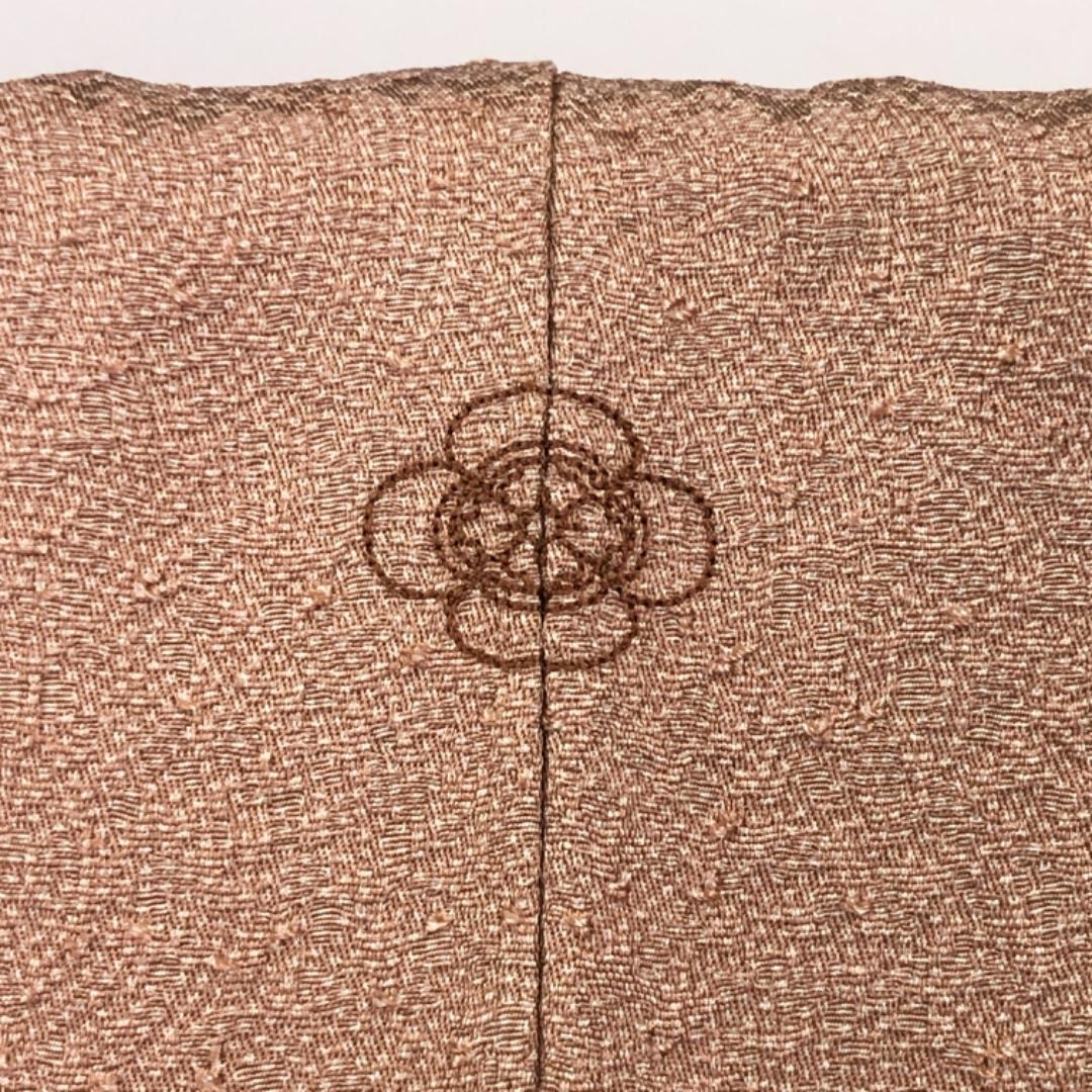 水柿色の落ち着いたお色味に鮫小紋柄の品の良い柄行、八掛にさり気なく花柄模様がデザインされた素敵なお品でございます。