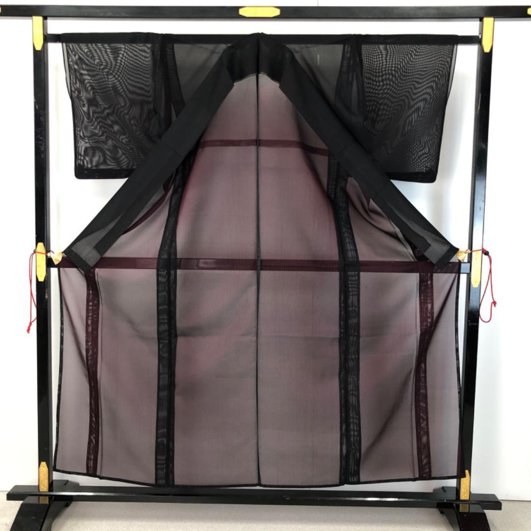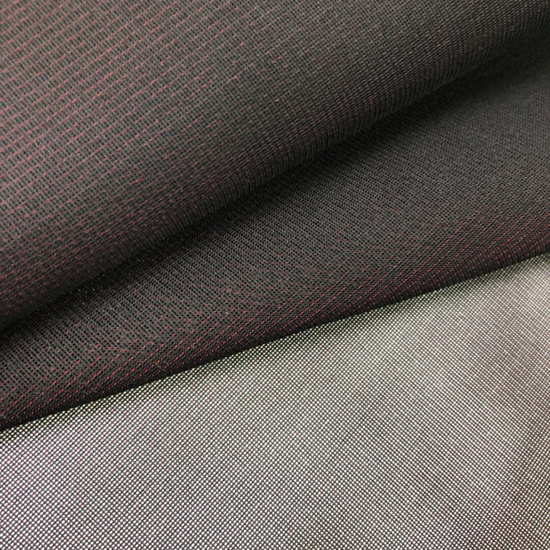 黒色ベースの表地に赤色の裏地の重なり合った色彩の無地、透け感のある素敵なお品でございます。