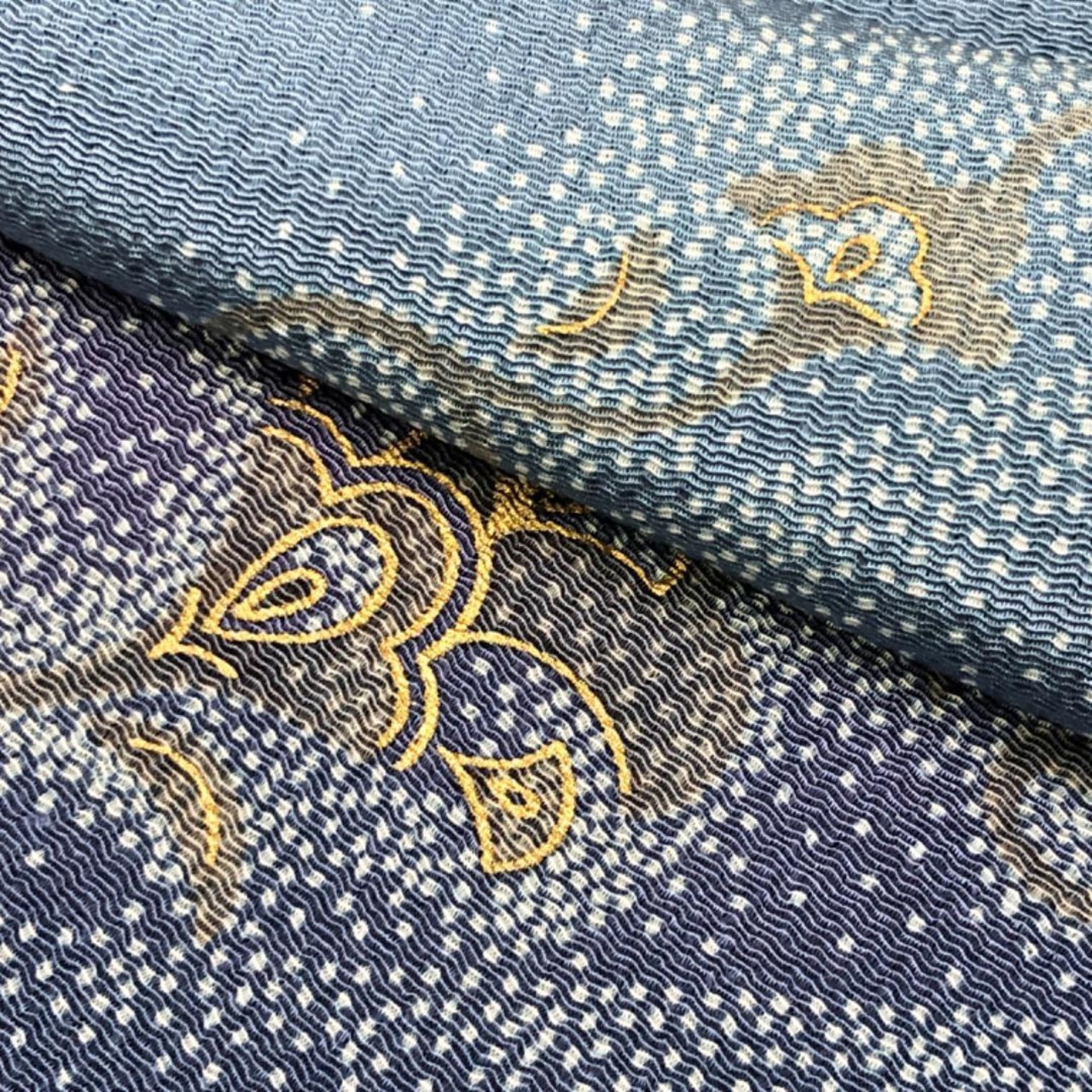和装小物 帯揚げ 正絹 暈し 華模様 縮緬 錫紵色 金彩 C-5750 着物 きもの kimono 和服 和装 中古 リサイクル着物 【送料無料】