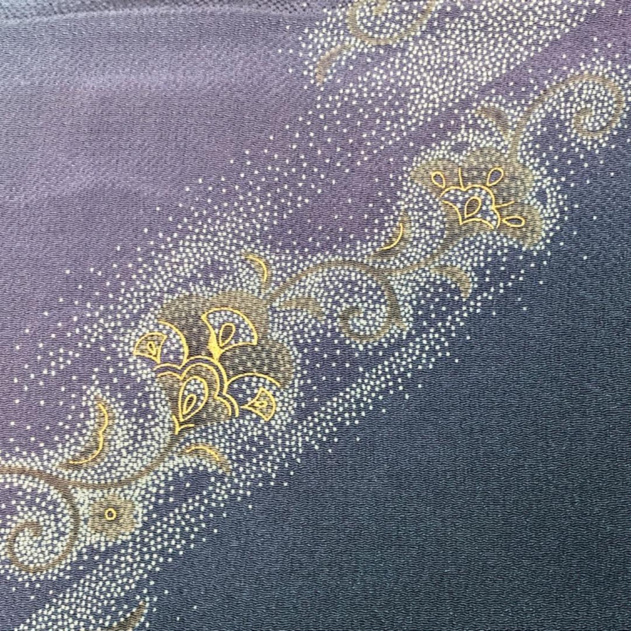 錫紵色ベースのお色味に美しい華模様の柄裄がデザインされた素敵なお品でございます。