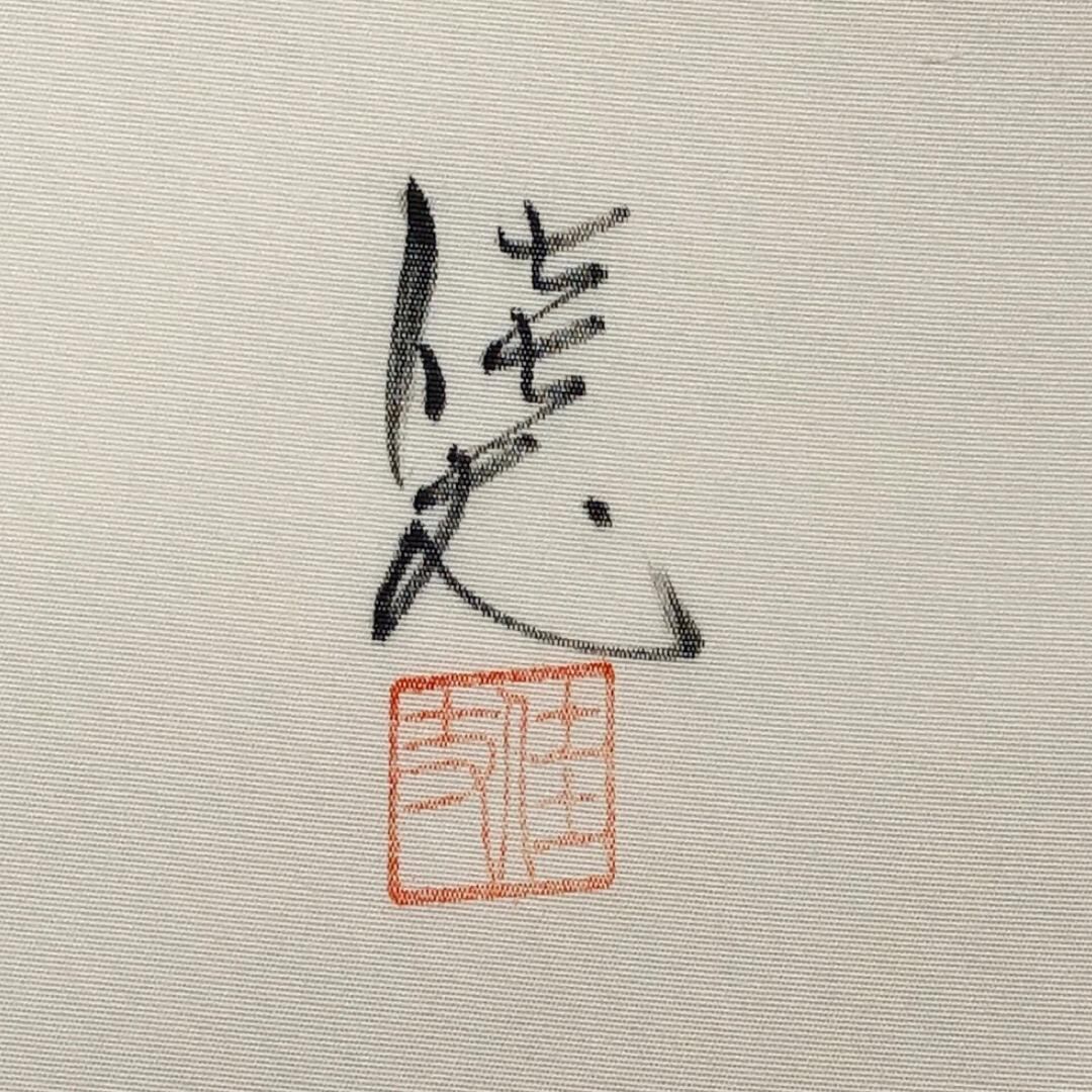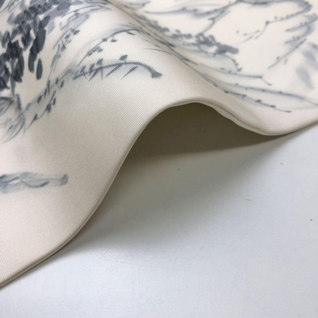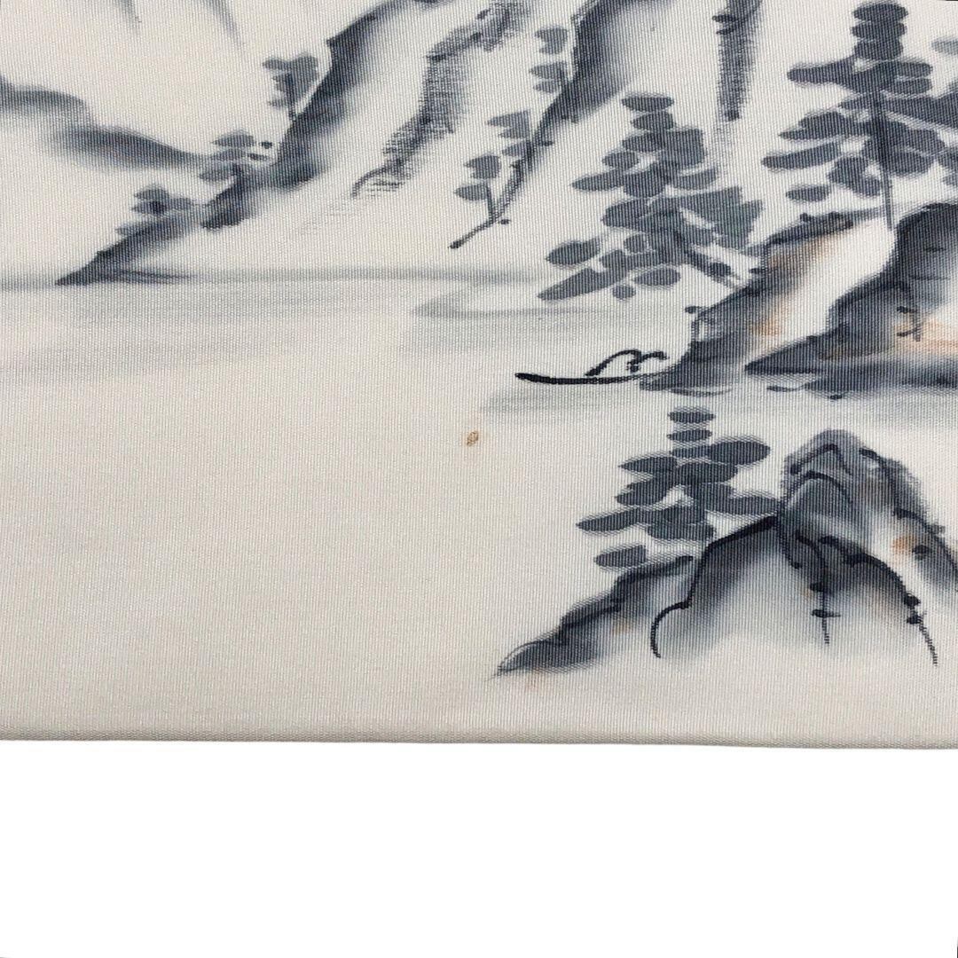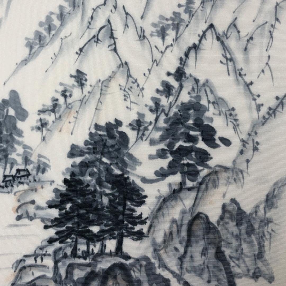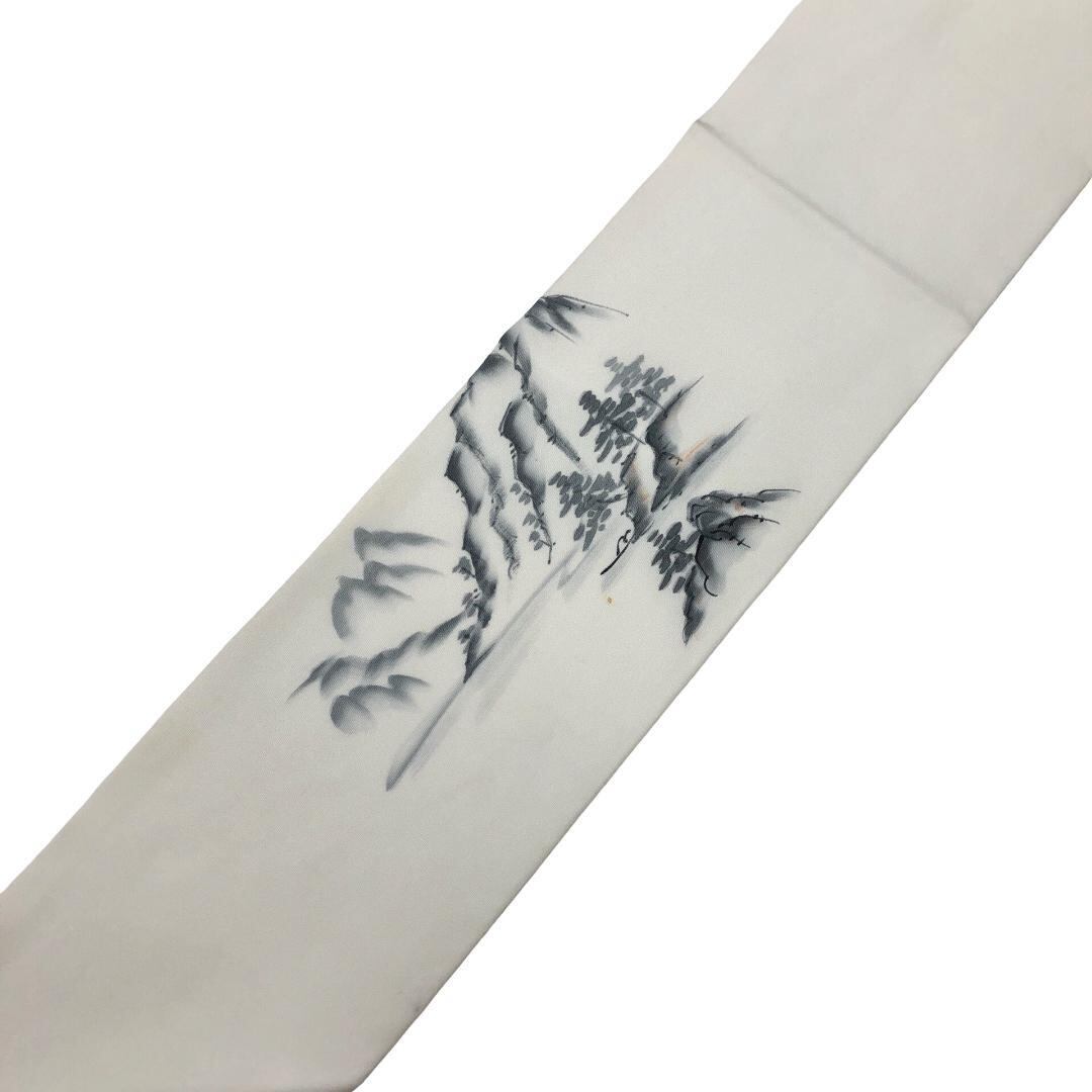 乳白色のお色味の塩瀬、墨描きの風景柄がデザインされた素敵な柄裄のお品でございます。