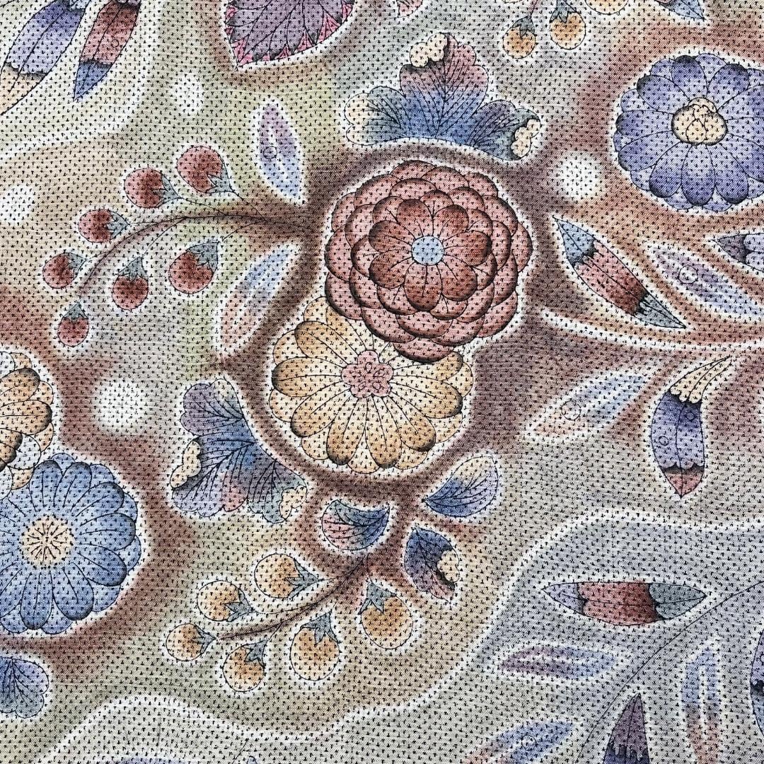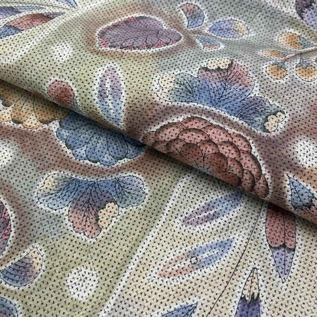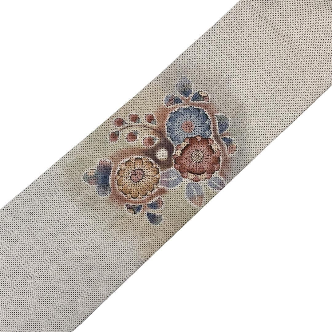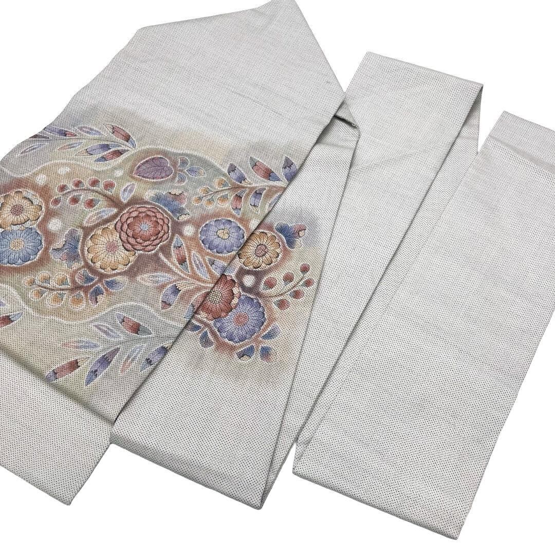乳白色の白大島、美しい辻が花模様の柄裄がデザインされた素敵なお品でございます。