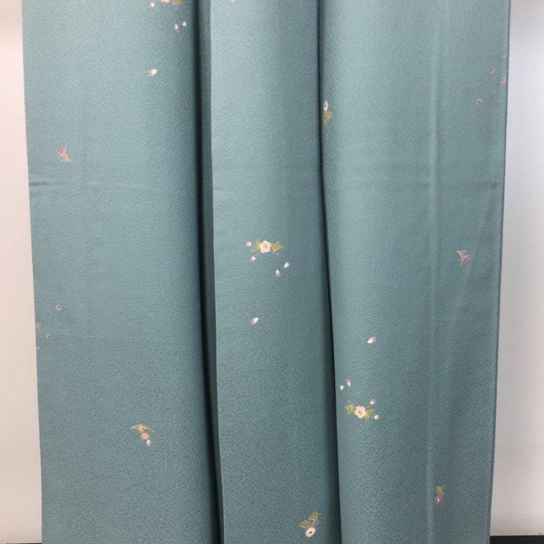 小紋 飛び柄 小花模様 薄藍砥茶色 縮緬 ガード加工 K-4640 着物 きもの kimono 和服 和装 中古 リサイクル着物 【送料無料】