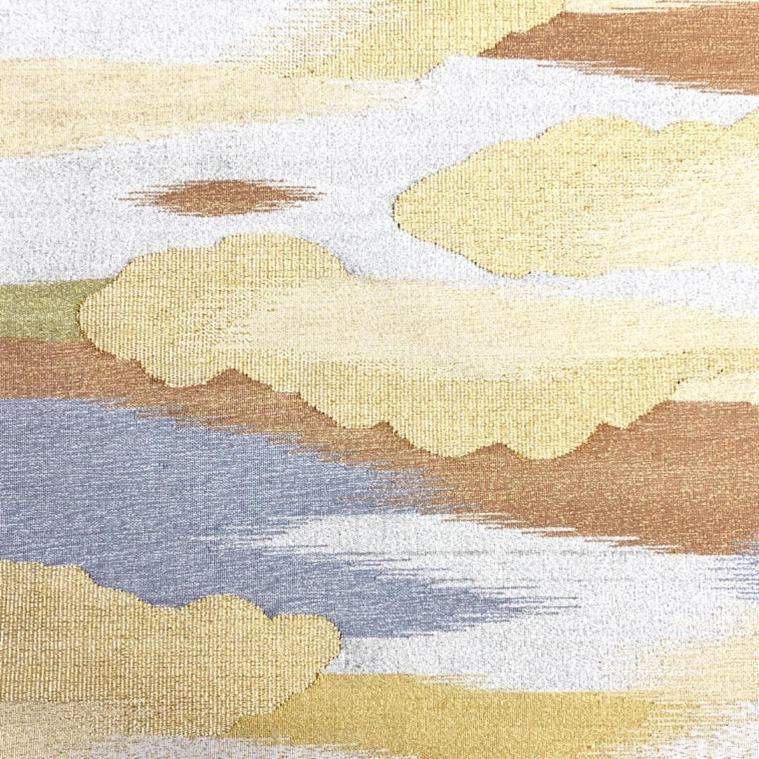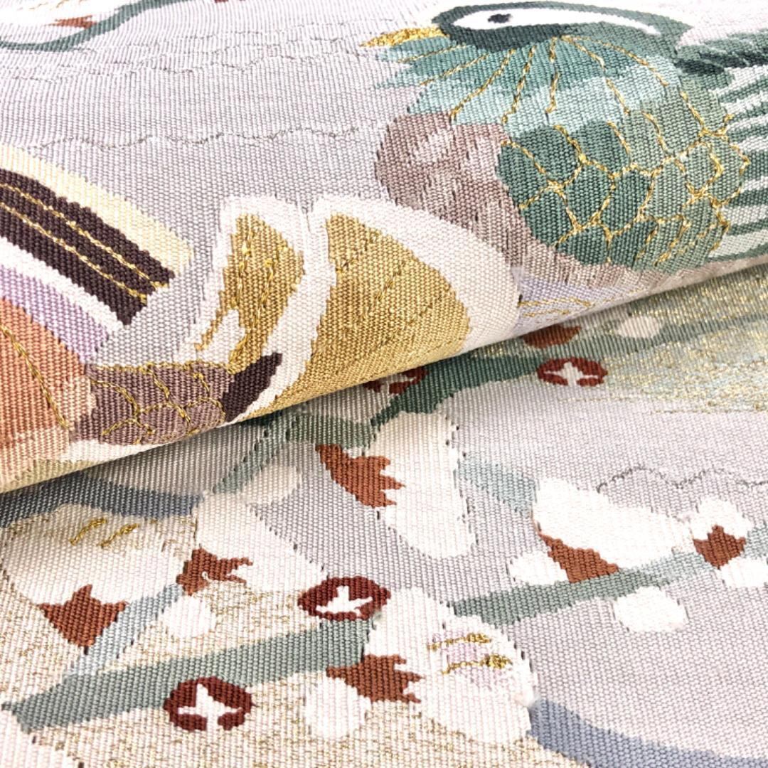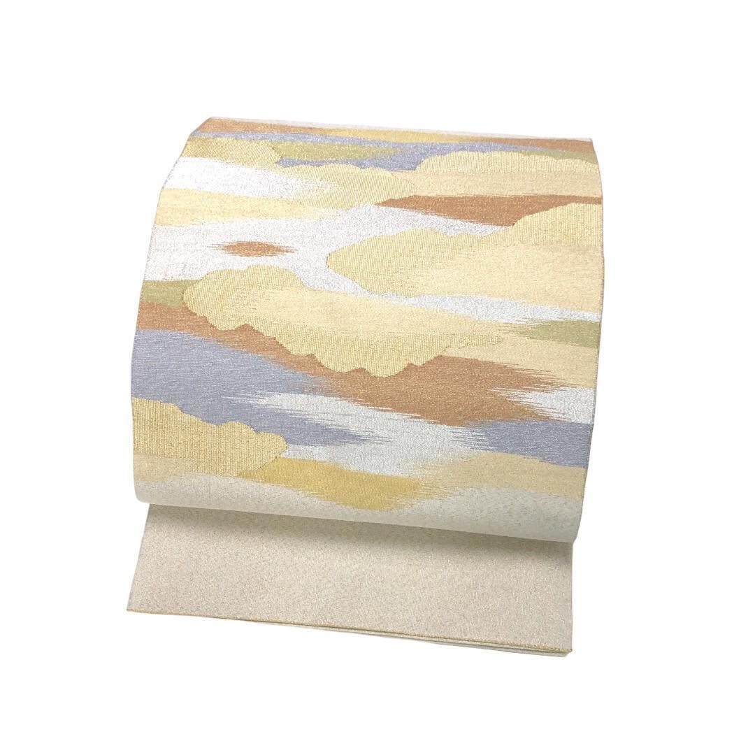 袋帯 山科春宣 綴れ 鴛鴦 霧模様 リバーシブル 練色 O-4991 着物 きもの kimono 和服 和装 中古 リサイクル着物 【送料無料】