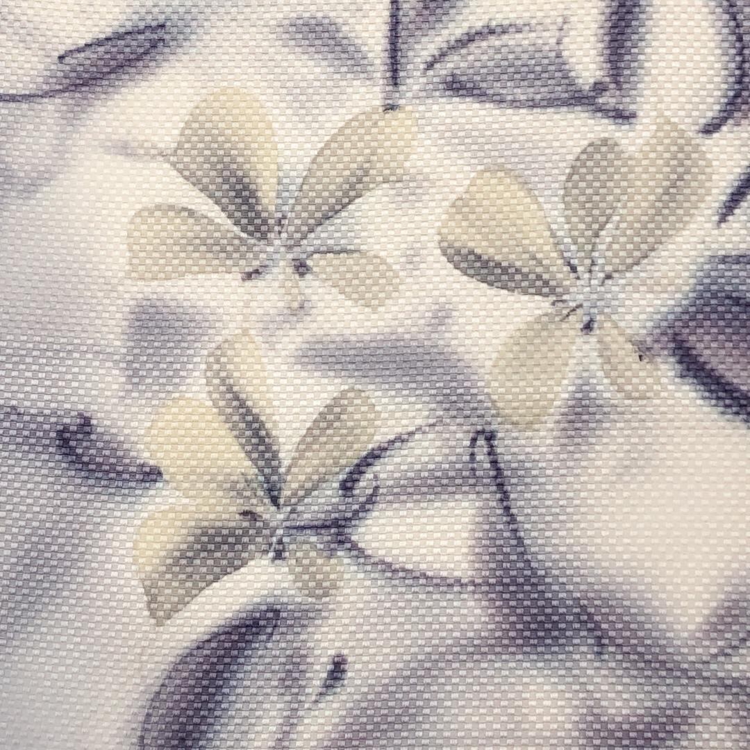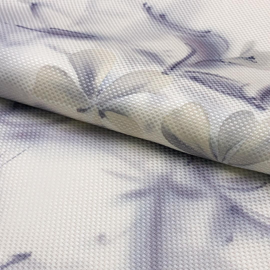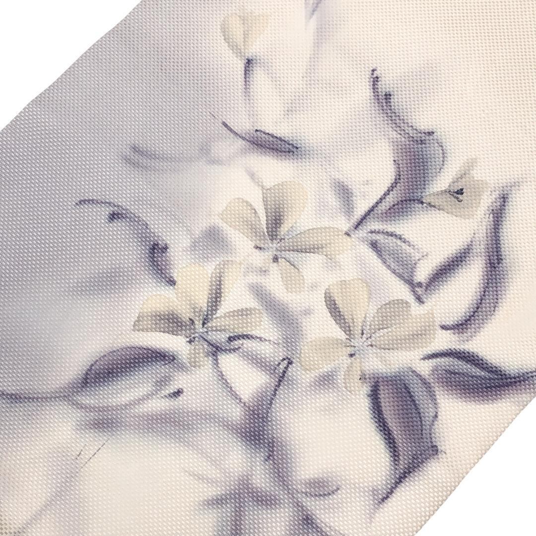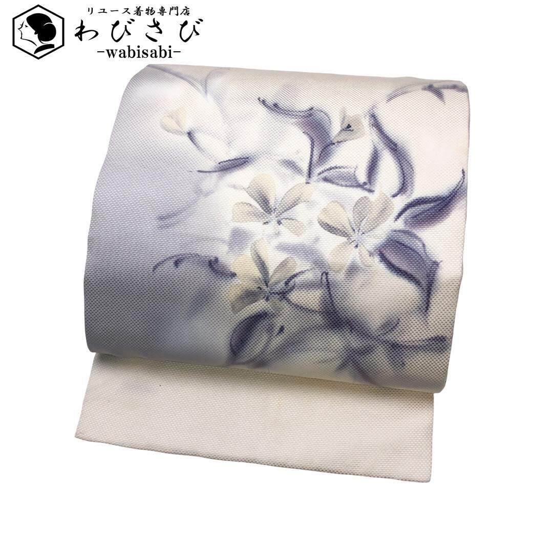 乳白色の品のあるお色味に手描きの上品な花模様の柄裄がデザインされた素敵なお品でございます。