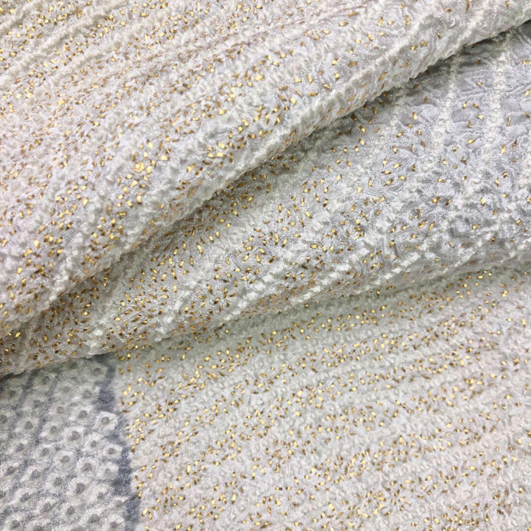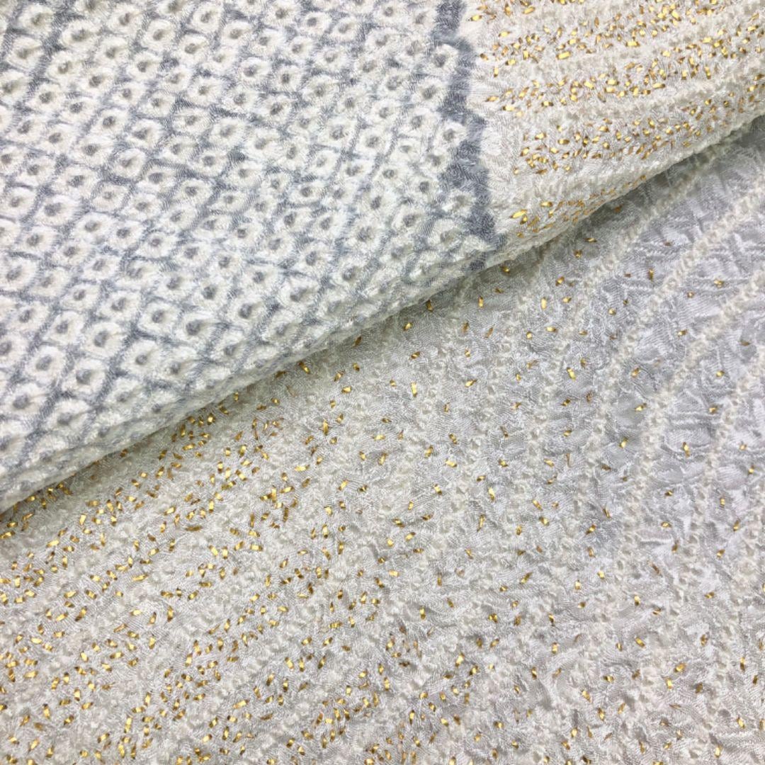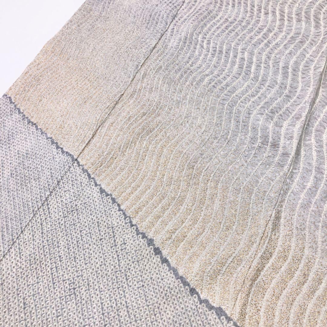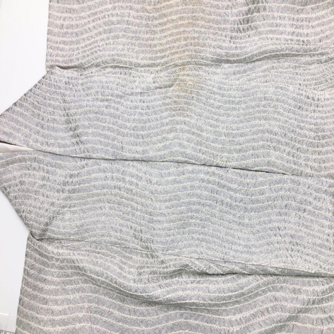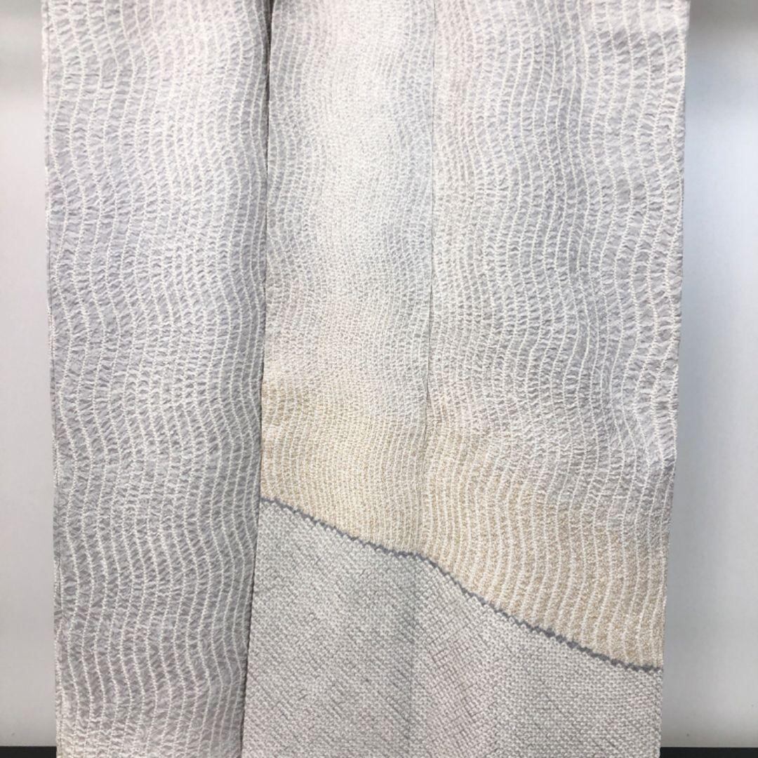 雲井鼠色ベースの上品なお色味に暈し、縦縞曲線模様の柄裄がデザインされた素敵なお品でございます。