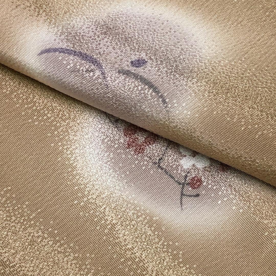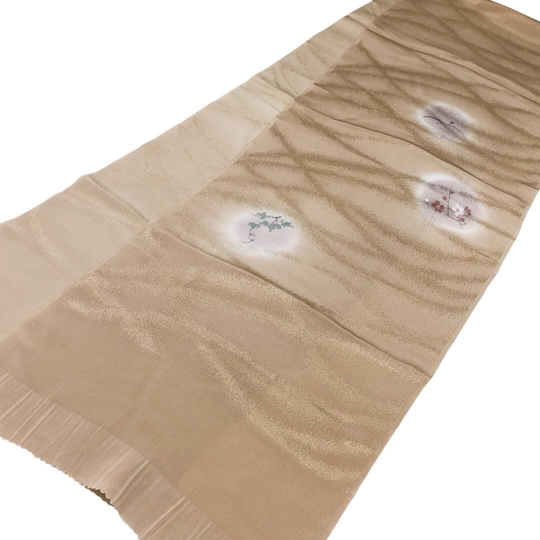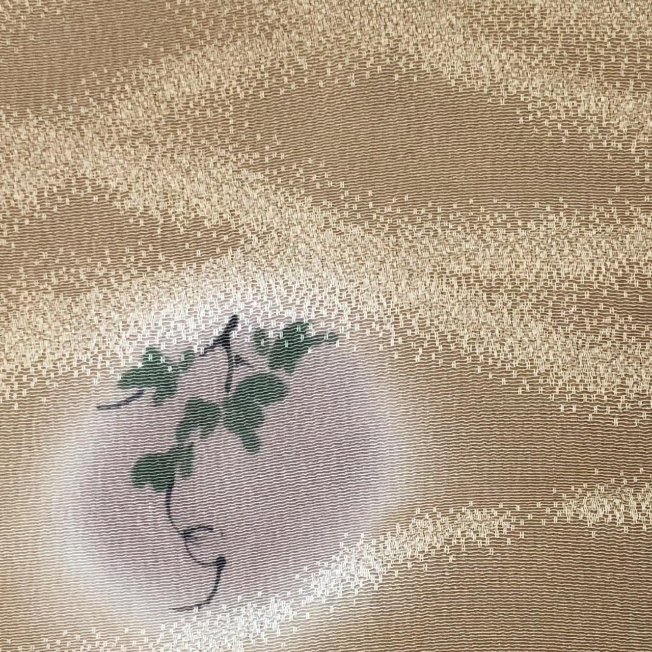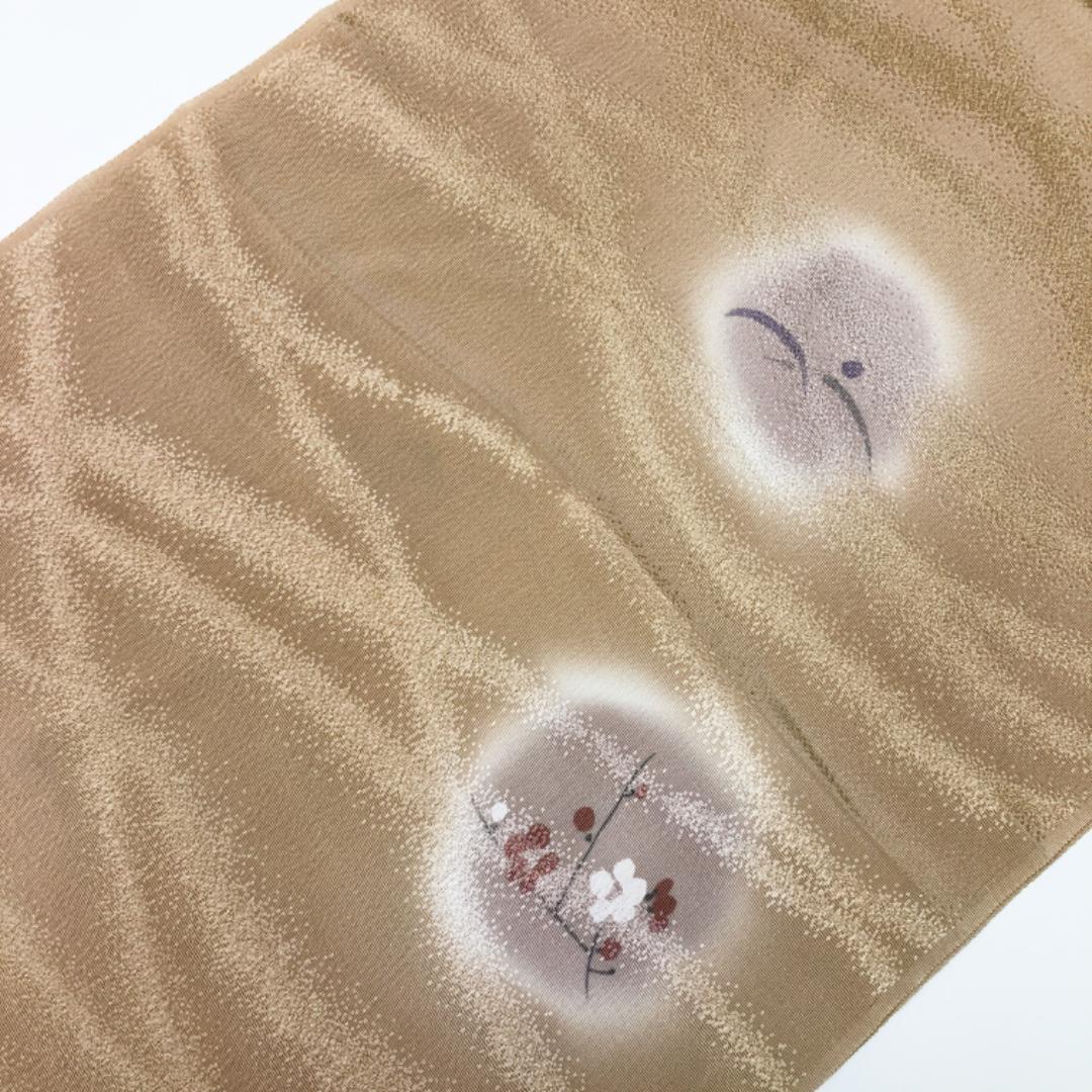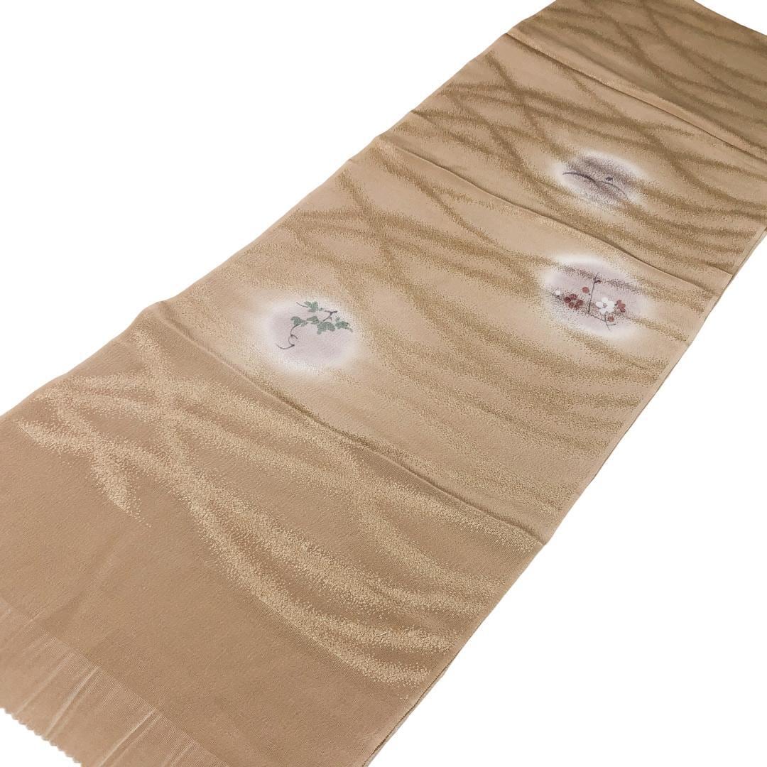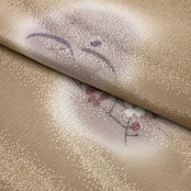 胡桃色のお色味に丸に花草模様の柄裄がデザインされた素敵なお品でございます。