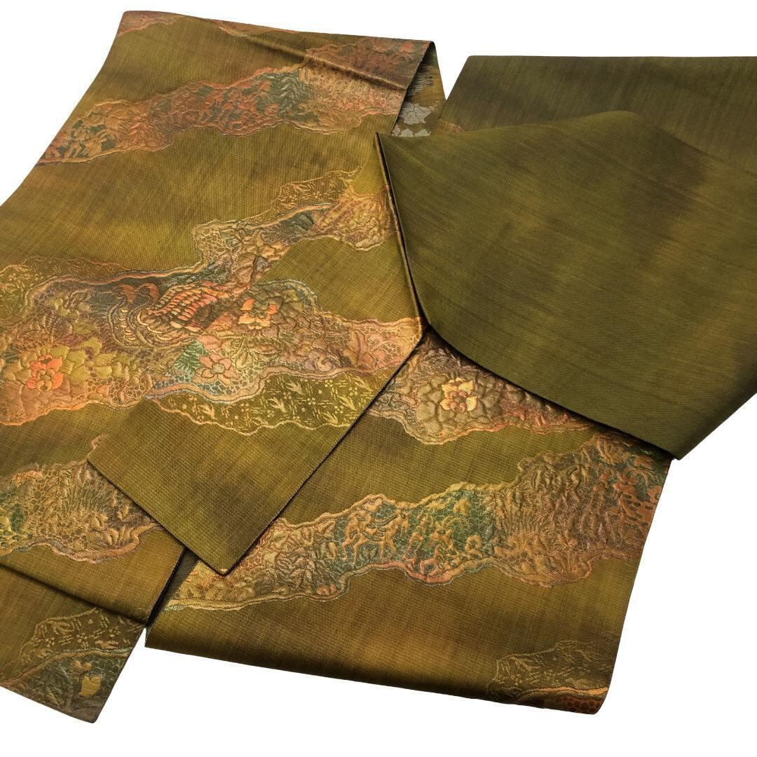 国防色の落ち着いたお色味に道長取り、鳥に花模様の柄裄がデザインされた素敵なお品でございます。