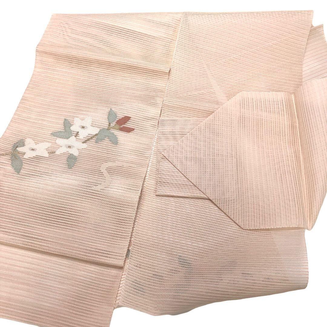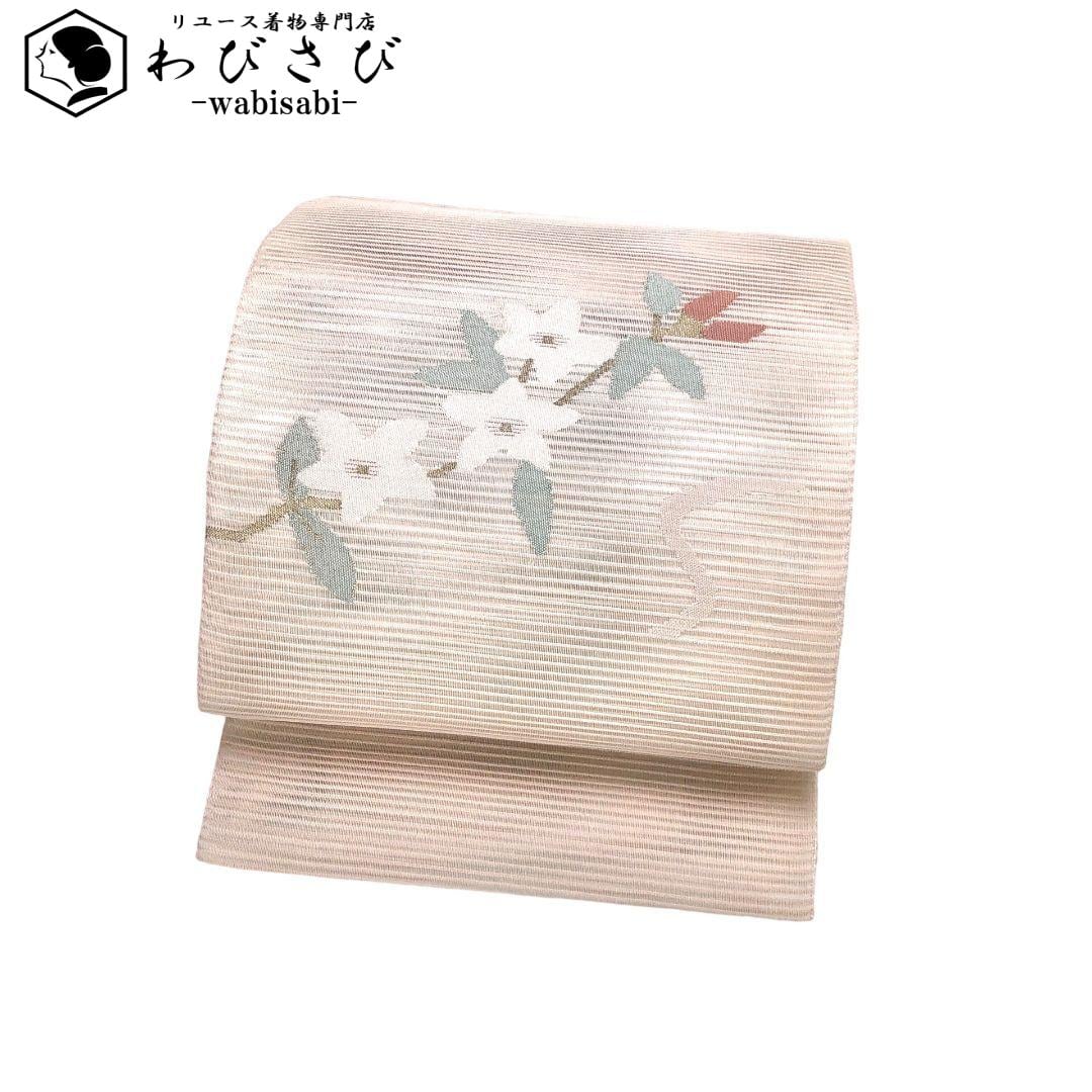 夏帯 名古屋帯 絽綴れ 花柄模様 金糸 乙女色 O-4987 着物 きもの kimono 和服 和装 中古 リサイクル着物 【送料無料】