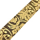 唐金色の落ち着きのあるお色味に雰囲気の良い花唐草模様がデザインされた紬の素敵な名古屋帯でございます。