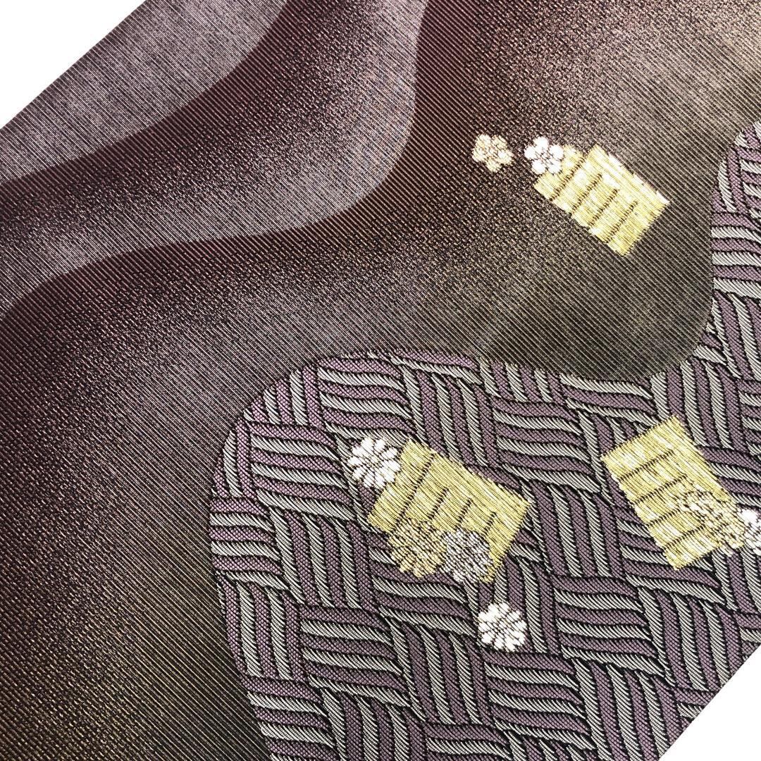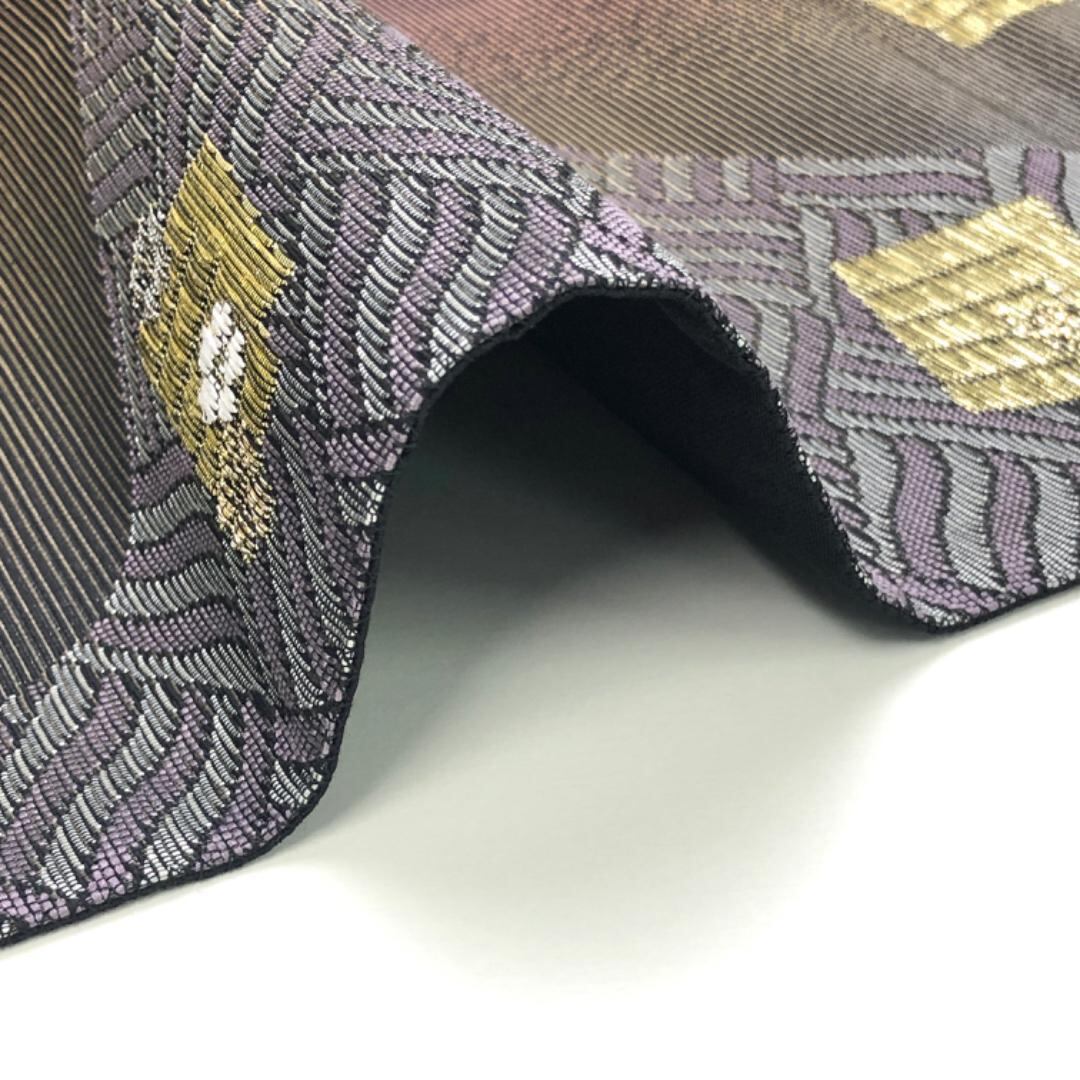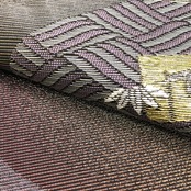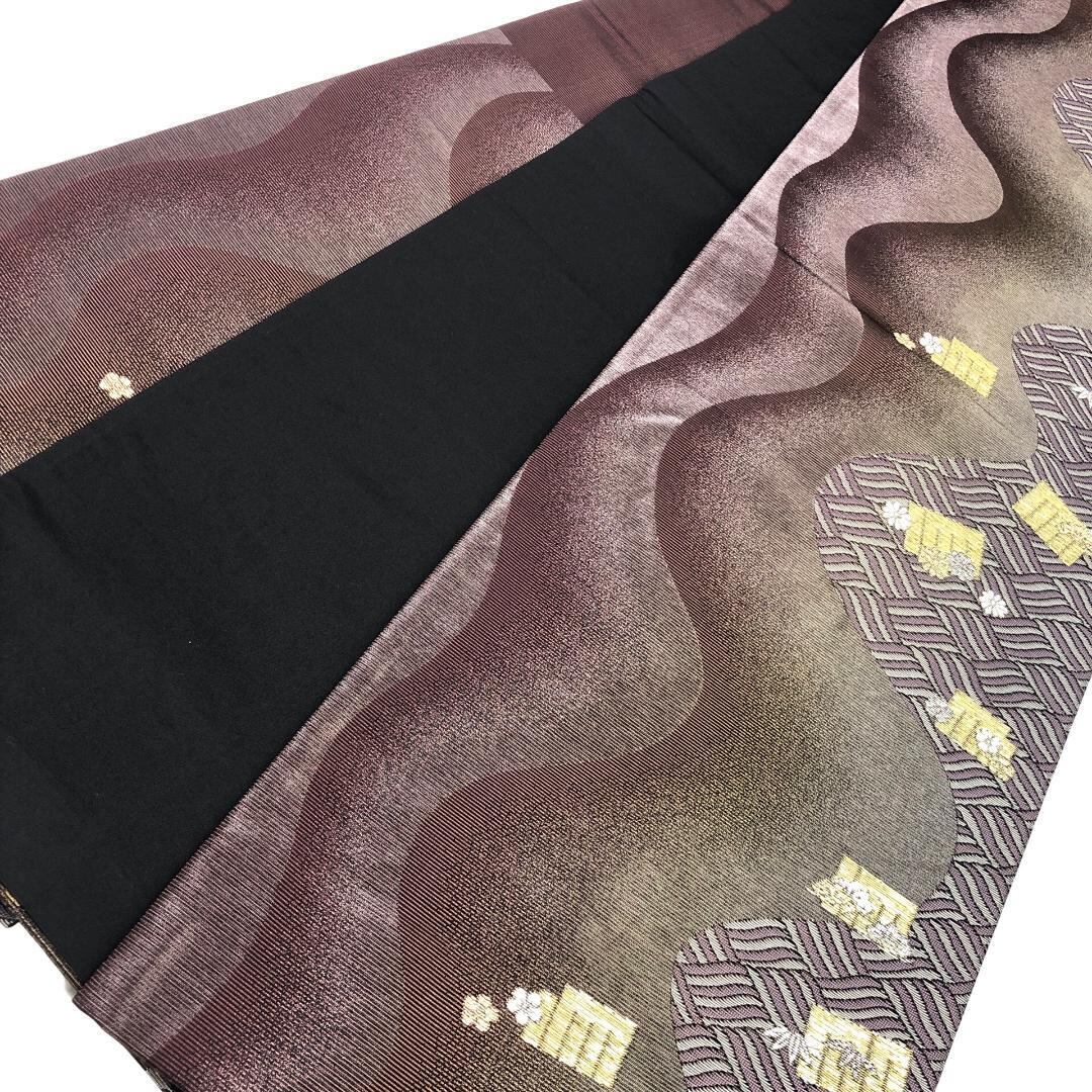 消炭色のお色味、曲線模様に源氏香、松竹梅がデザインされた落ち着きのある素敵な柄裄のお品でございます。