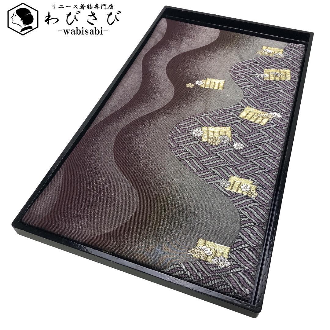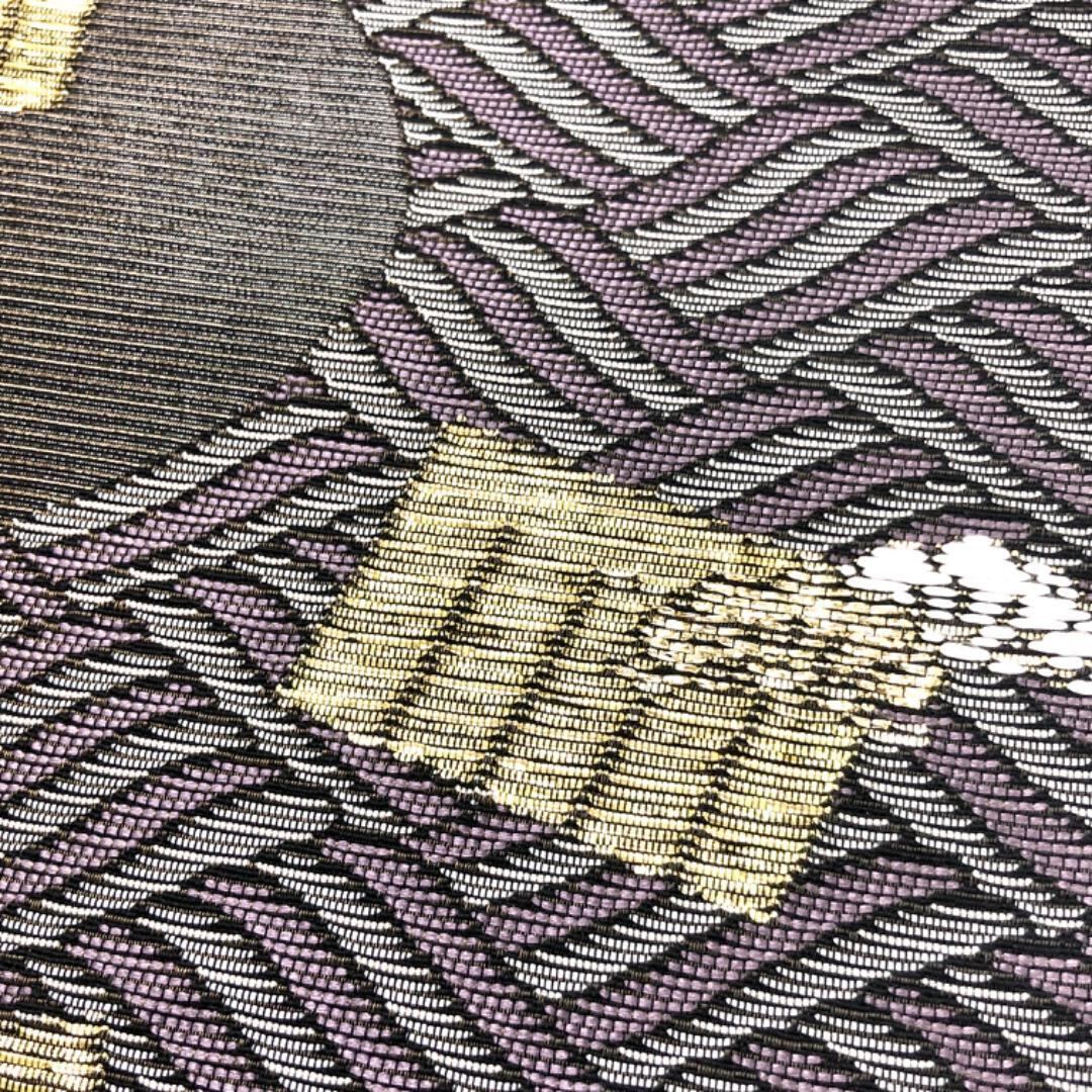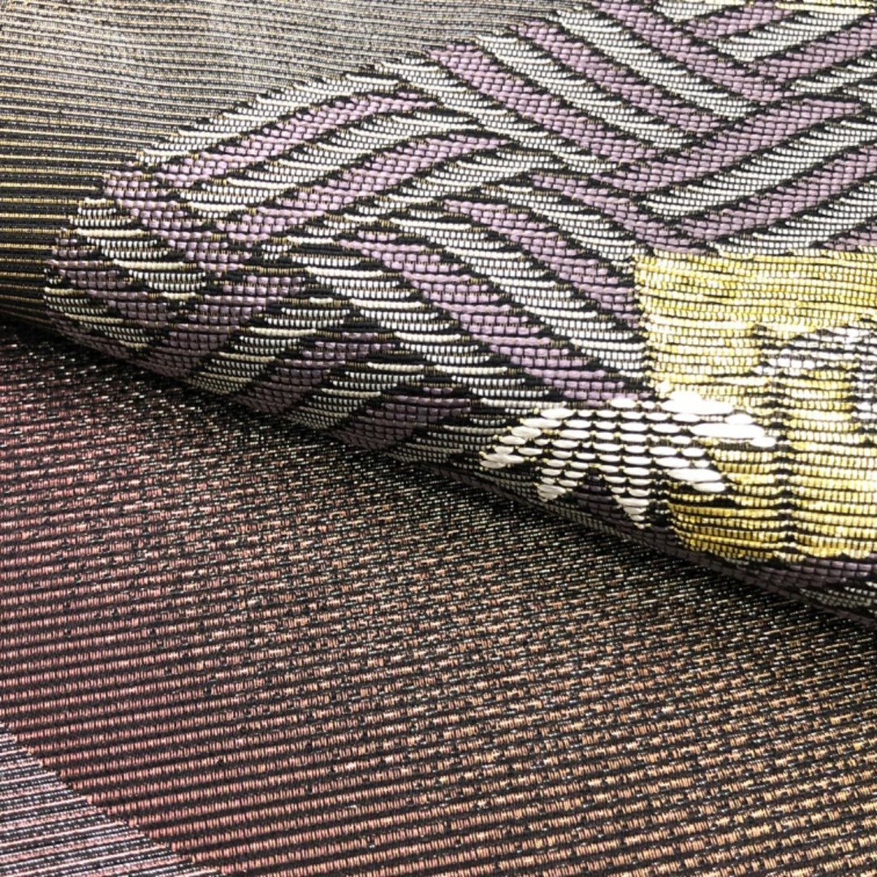 消炭色のお色味、曲線模様に源氏香、松竹梅がデザインされた落ち着きのある素敵な柄裄のお品でございます。