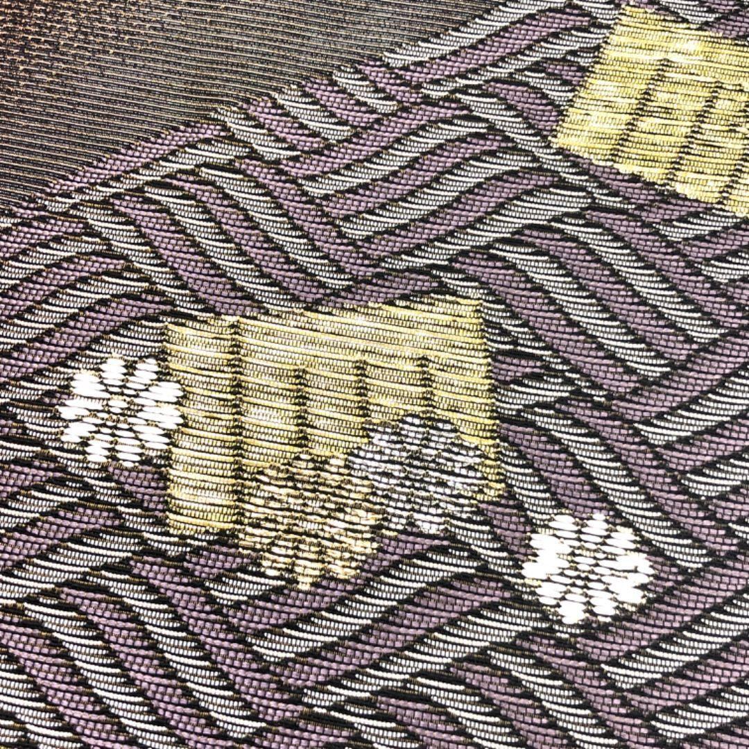 袋帯 源氏香に松竹梅 曲線模様 金銀糸 消炭色 O-4999 着物 きもの kimono 和服 和装 中古 リサイクル着物 【送料無料】