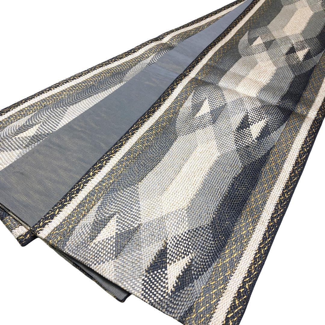 袋帯 人間国宝 深見重助 美しいモダンな織模様 乳白色 金糸 O-4961 着物 きもの kimono 和服 和装 中古 リサイクル着物 【送料無料】